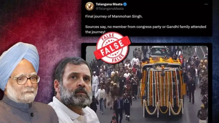 New Delhi: Viral posts falsely claim that senior Congress leaders Rahul Gandhi, Sonia Gandhi and Priyanka Gandhi Vadra did not attend former Prime Minister Manmohan Singh’s funeral.