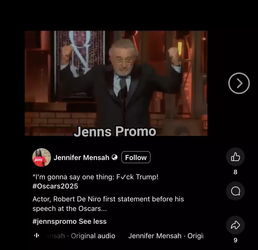 In the viral video which is being shared on Facebook and X, De Niro exclaims, “I am going to say one thing, f**k Trump!”