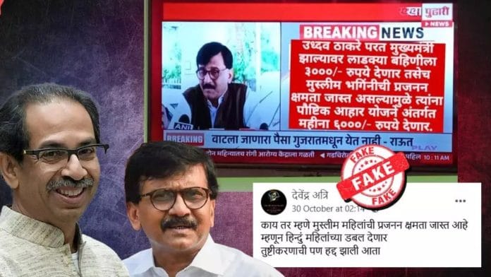 New Delhi: A viral news graphic showing a news bulletin that quotes Shiv Sena (Uddhav Balasaheb Thackeray) leader Sanjay Raut saying that his party would pay higher financial assistance to Muslim women if it came to power in Maharashtra, is morphed and fake.
