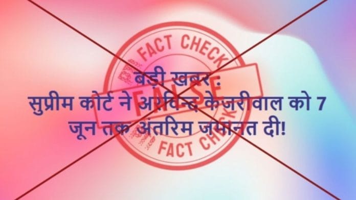A Facebook user claimed on 7 May that the Supreme Court had granted interim bail to Delhi CM Arvind Kejriwal till 7 June.
