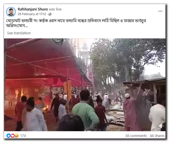 Haque told BOOM Bangladesh, “The video is from the Rahim Shah Baba Bhandari shrine in Ghoraghat. It captures a hate-driven attack on the shrine by Towhidi Janata on February 28, 2025. There was no Hindu or communal angle to the incident.”