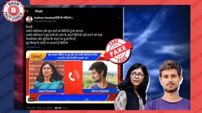 On 13 May, Maliwal, in a complaint to Delhi Police, alleged that she was attacked by Arvind Kejriwal’s aide Bibhav Kumar inside the CM’s residence. Kumar has denied the allegation and written to the Delhi Police for registering an FIR on his complaint too. The Delhi Police arrested Kumar on 18 May, 2024, and he currently remains in police custody. Following this, YouTuber Dhruv Rathee made a video on the incident, and alleged that Maliwal’s complaint was spurious. The viral audio recording is being shared in this backdrop.