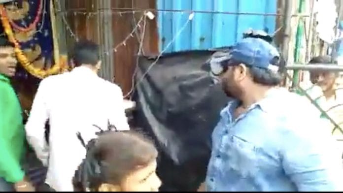 In the 37-second video, a man in a blue shirt and cap can be seen entering a Durga Puja pandal in Mumbai’s Malwani with another man, and asking people to shut down the music.