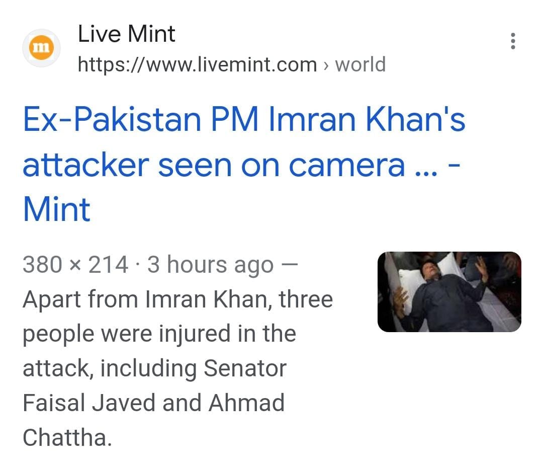 BREAKING: Former Pakistan prime minister Imran Khan shot in assassination attempt. Reports he was hit several times in his legs but survived & now being treated in hospital. Shooter was wrestled by another man as he fired, which may have saved Khan’s life. pic.twitter.com/rJbOhju01h
