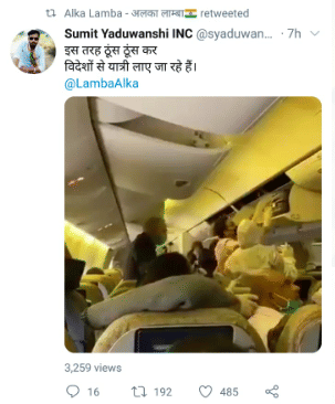 One person said to the flight attendant: “According to you people, coronavirus is outside but not inside the flight. If anything will happen to me, I will sue you guys.”
