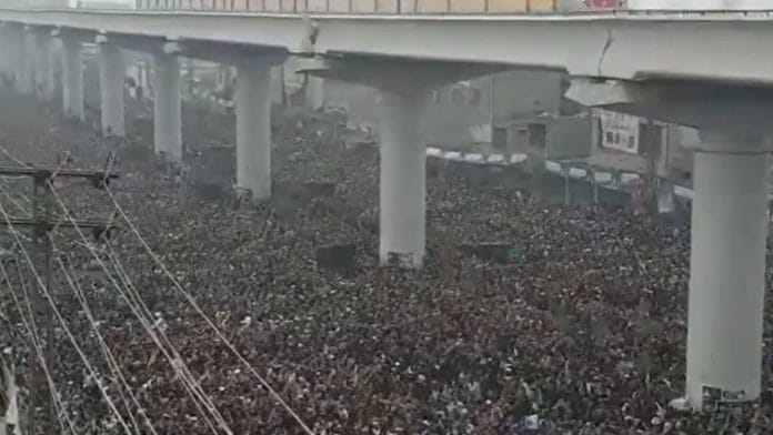 New Delhi: A video clip showing thousands of men — allegedly protesting the derogatory remarks against Prophet Muhammad by BJP leaders — is doing the rounds of social media platforms like Whatsapp, Twitter and Youtube. It falsely claims they are Indian Muslims gathered at a rally to “condemn the blasphemous remarks” against the Prophet.