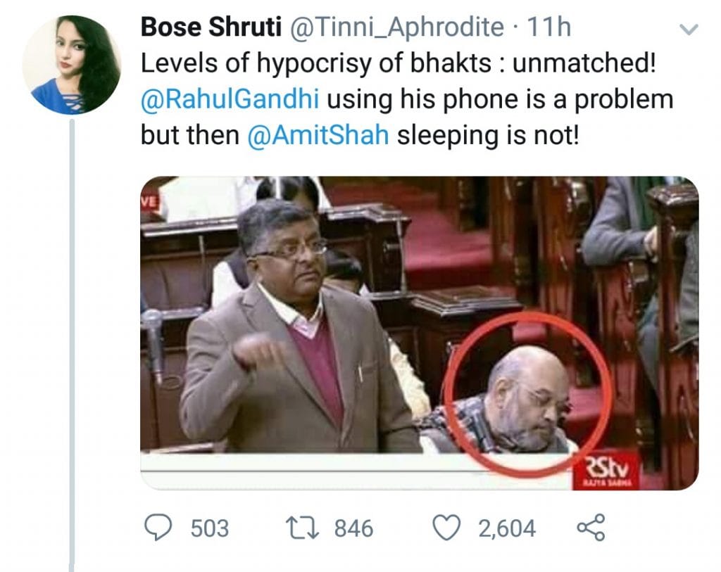 The fake tweet claiming Shah was napping in Parliament seems to be in retaliation to the flak Gandhi drew.