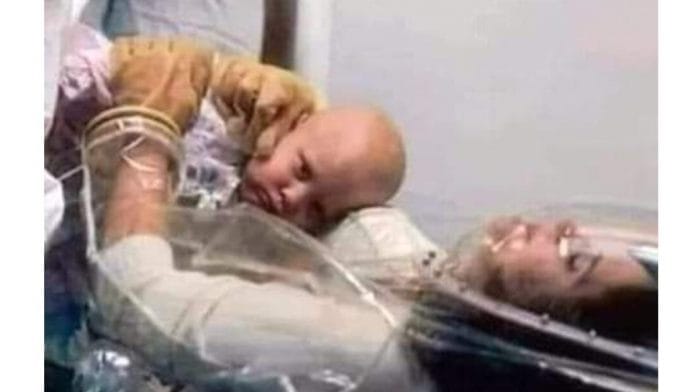New Delhi: A photograph of a woman in protective gear, hugging a baby has gone viral on social media, with the claims that the woman was in the ‘final stage’ of coronavirus and on the verge of death.