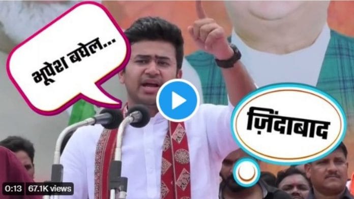 New Delhi: A 13-second clip showing people raising slogans of “Bhupesh Baghel zindabad” during a rally of BJP MP Tejasvi Surya was shared by the Chhattisgarh Congress on Twitter Friday.
