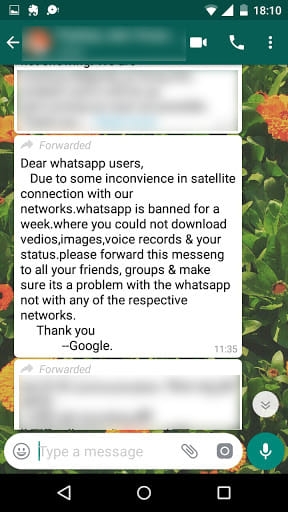 Another message, which has been attributed to Google, stated that WhatsApp would be banned for a week.