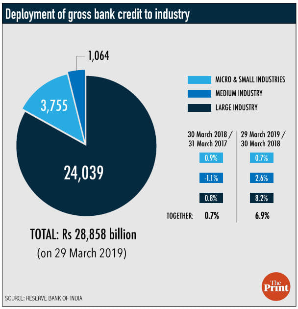 As a consequence, total bank credit grew by 12.2 per cent in the financial year 2018-19. The total credit to industry grew by 6.9 per cent.