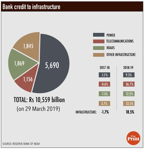 The sectoral composition of bank credit growth shows a sharp increase in credit to infrastructure which grew at 18.5 per cent in the 2018-19 fiscal. The growth rate was negative in 2017-18 at -1.7 per cent. The numbers show the continued dependence of infrastructure on banks. Considering the asset liability mismatch in bank lending to infrastructure, increased credit to the sector raises risk for banks.