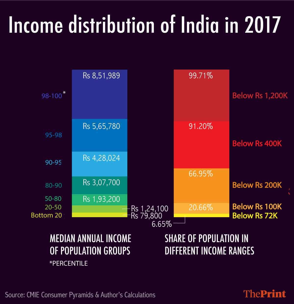 Eighty per cent of households earn less than Rs 3 lakh a year or Rs 25,000 per month. This is hardly the section that is “rich” and should be taxed to pay for the poor.
