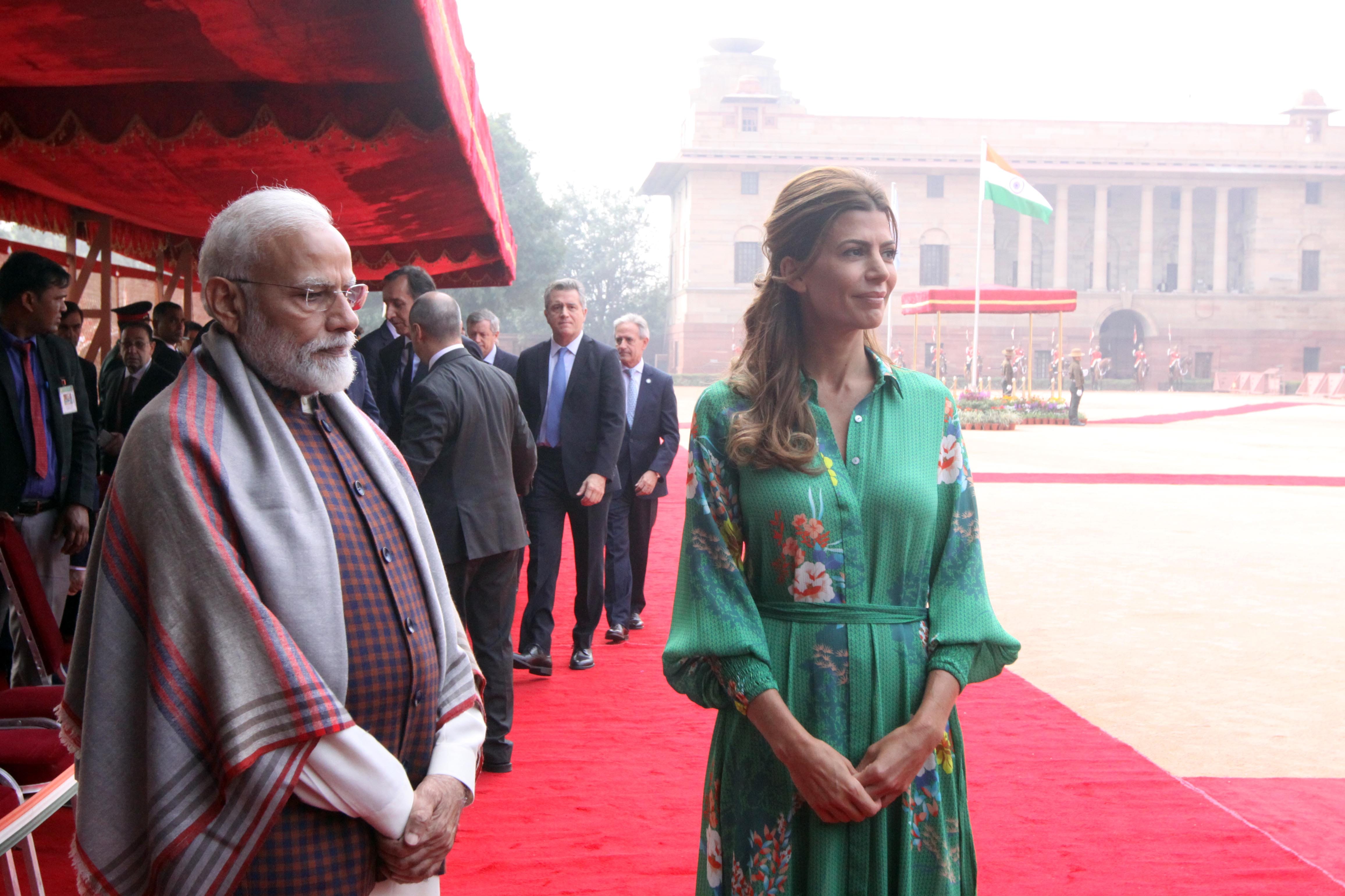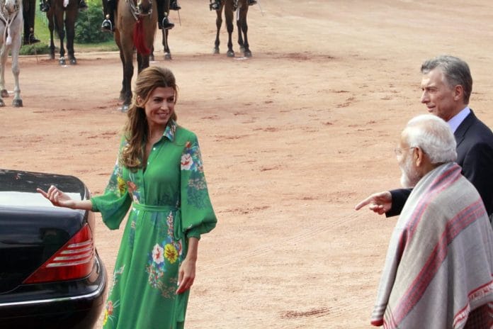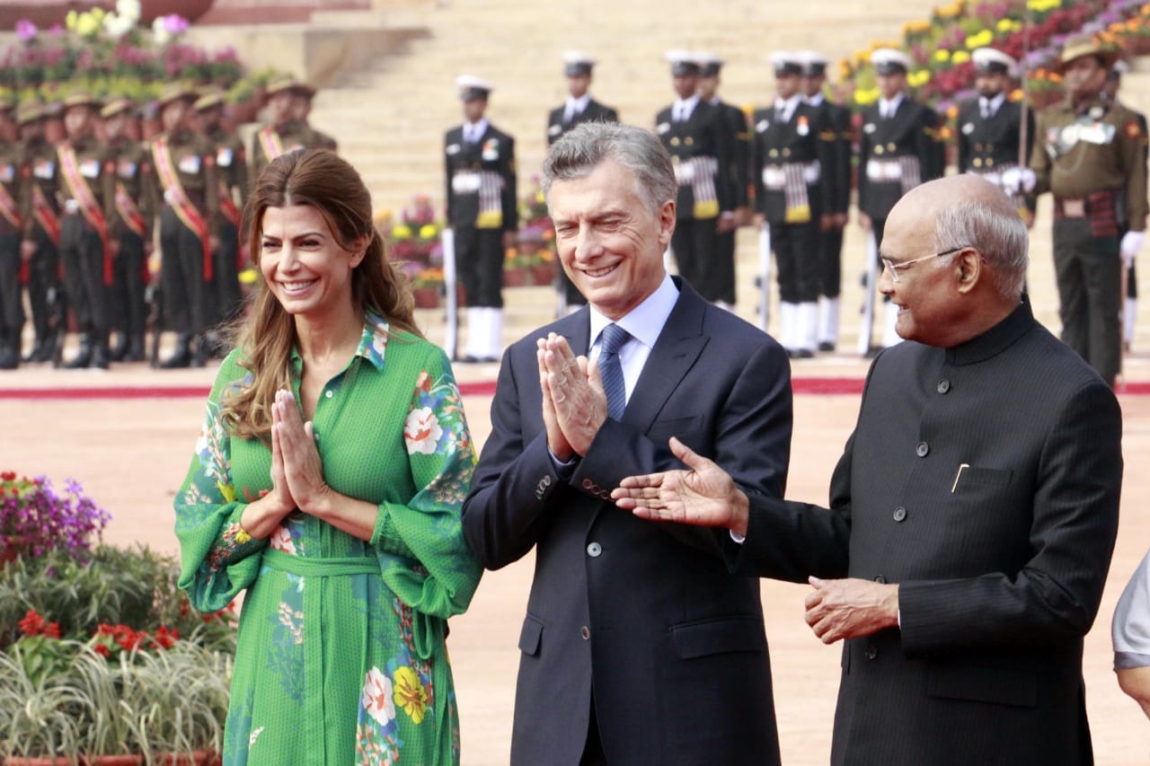 However, at the ceremonial reception at Rashtrapati Bhavan, Macri’s wife Juliana Awada was the centre of attention.
