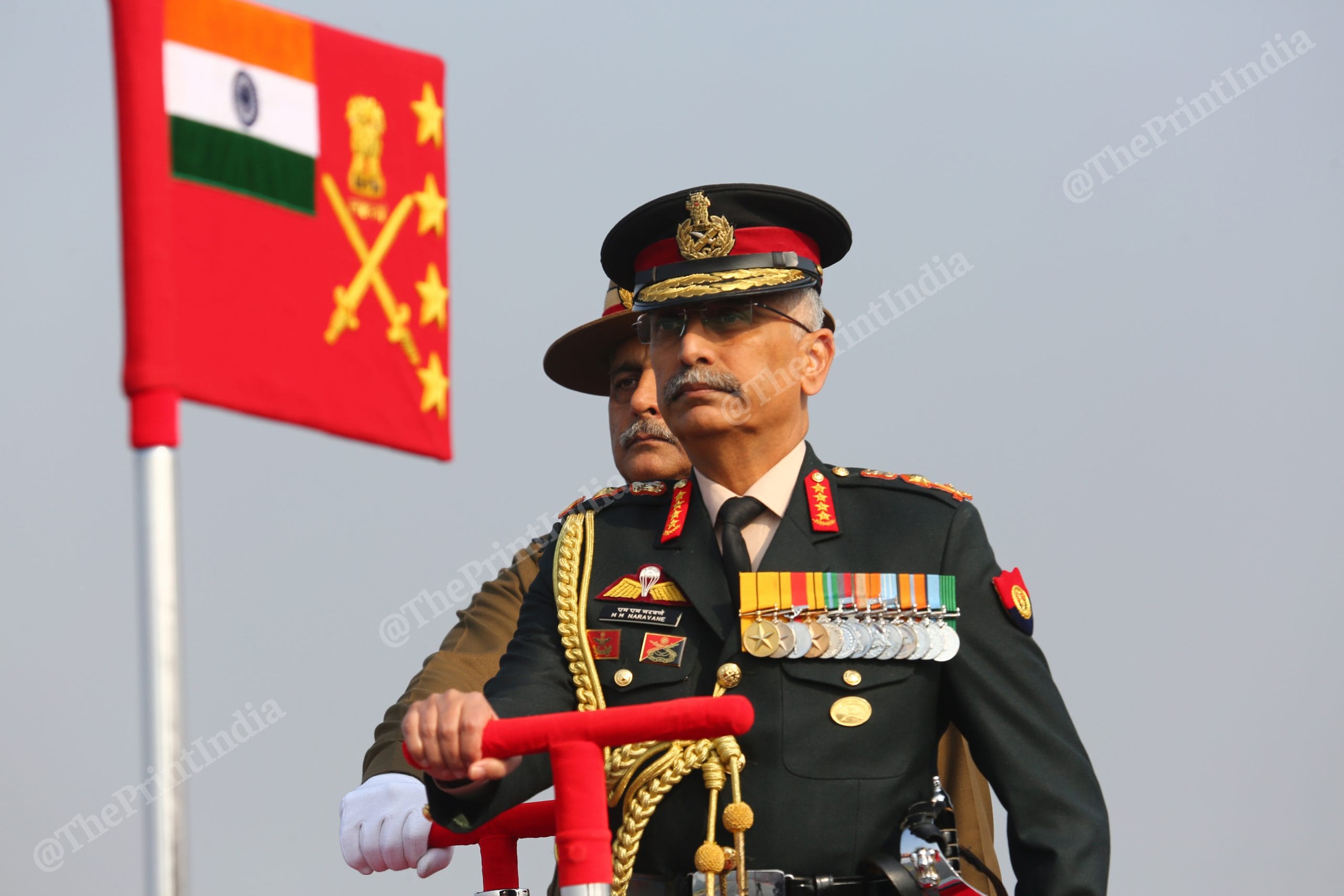 New CDS General Bipin Rawat greets Air Chief Marshal R.K.S. Bhadauria (centre) and Navy Chief Admiral Karambir Singh (right) | Suraj Singh Bisht | ThePrintArmy chief Gen M.M. Naravane inspects the Army Day parade | Suraj Singh Bisht | ThePrint