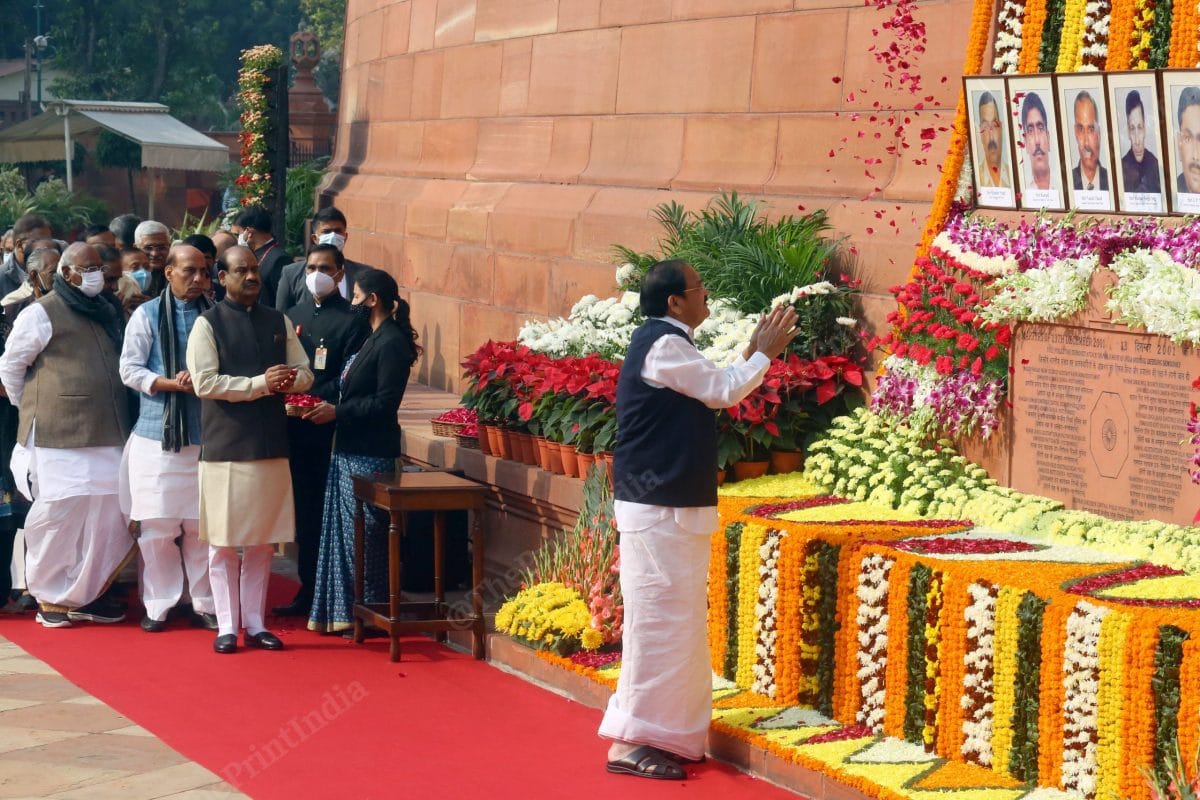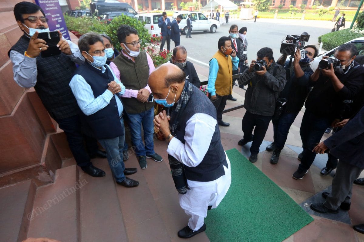 Defence Minister Rajnath Singh reaches Parliament to make a statement after the helicopter crash in Tamil Nadu | Photo: Praveen Jain | ThePrint