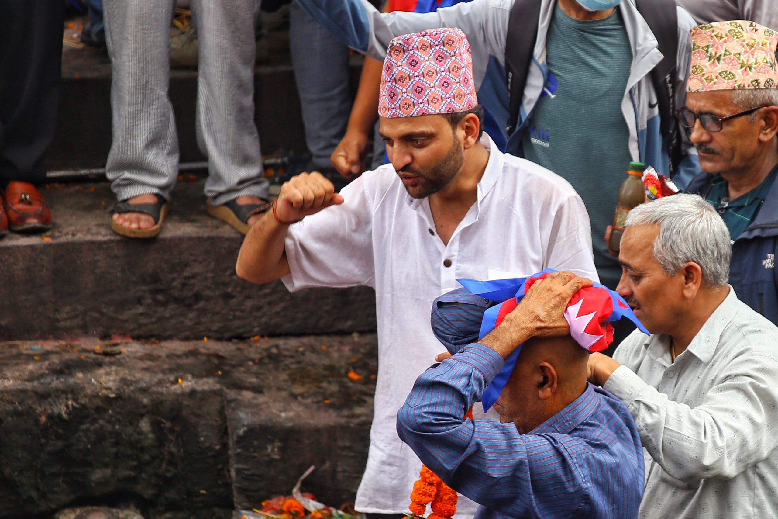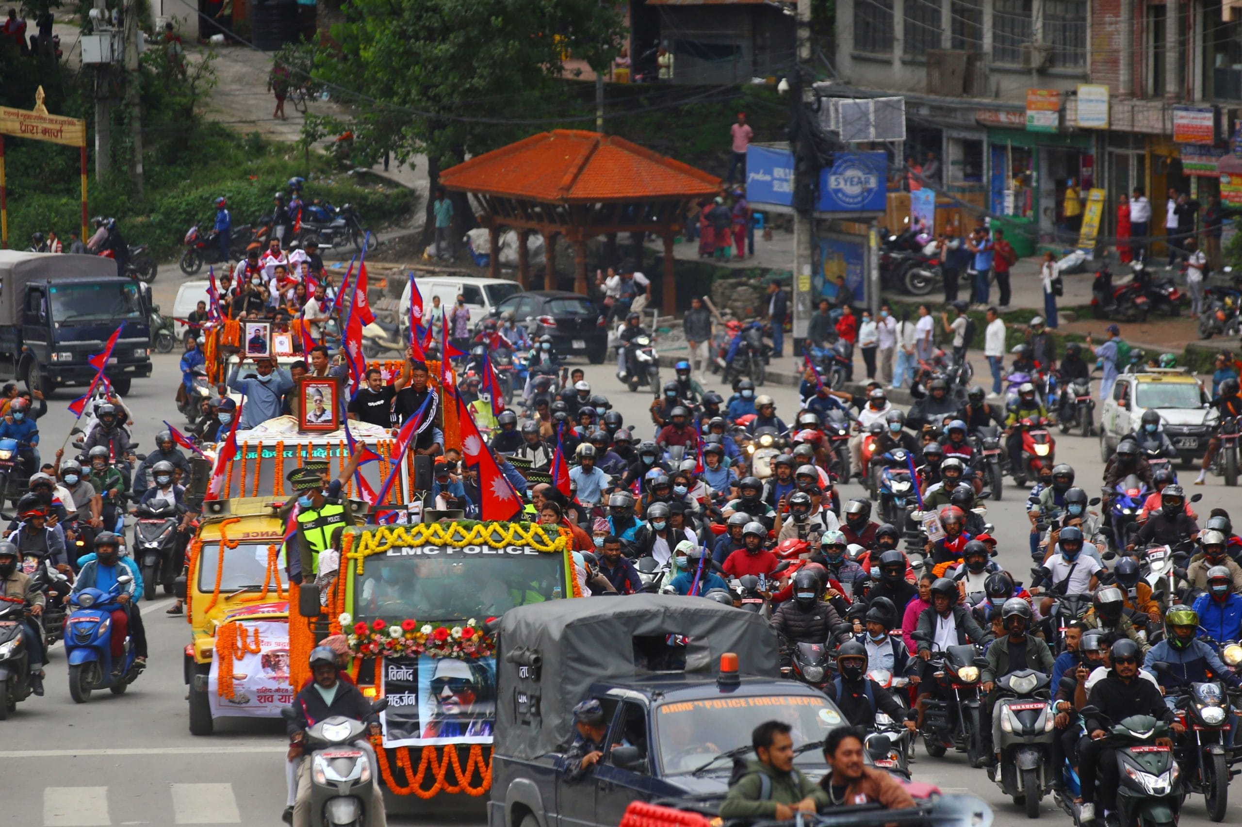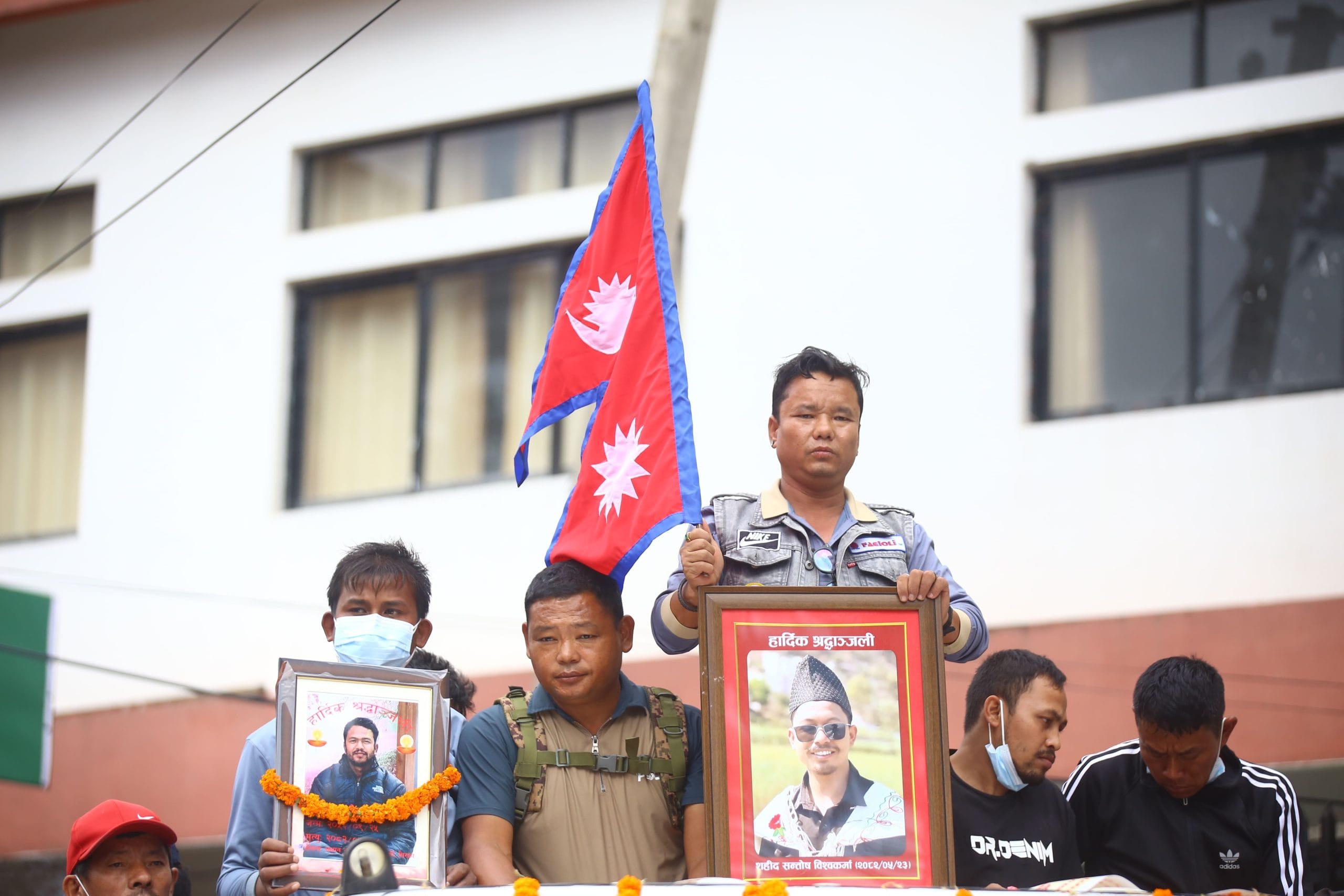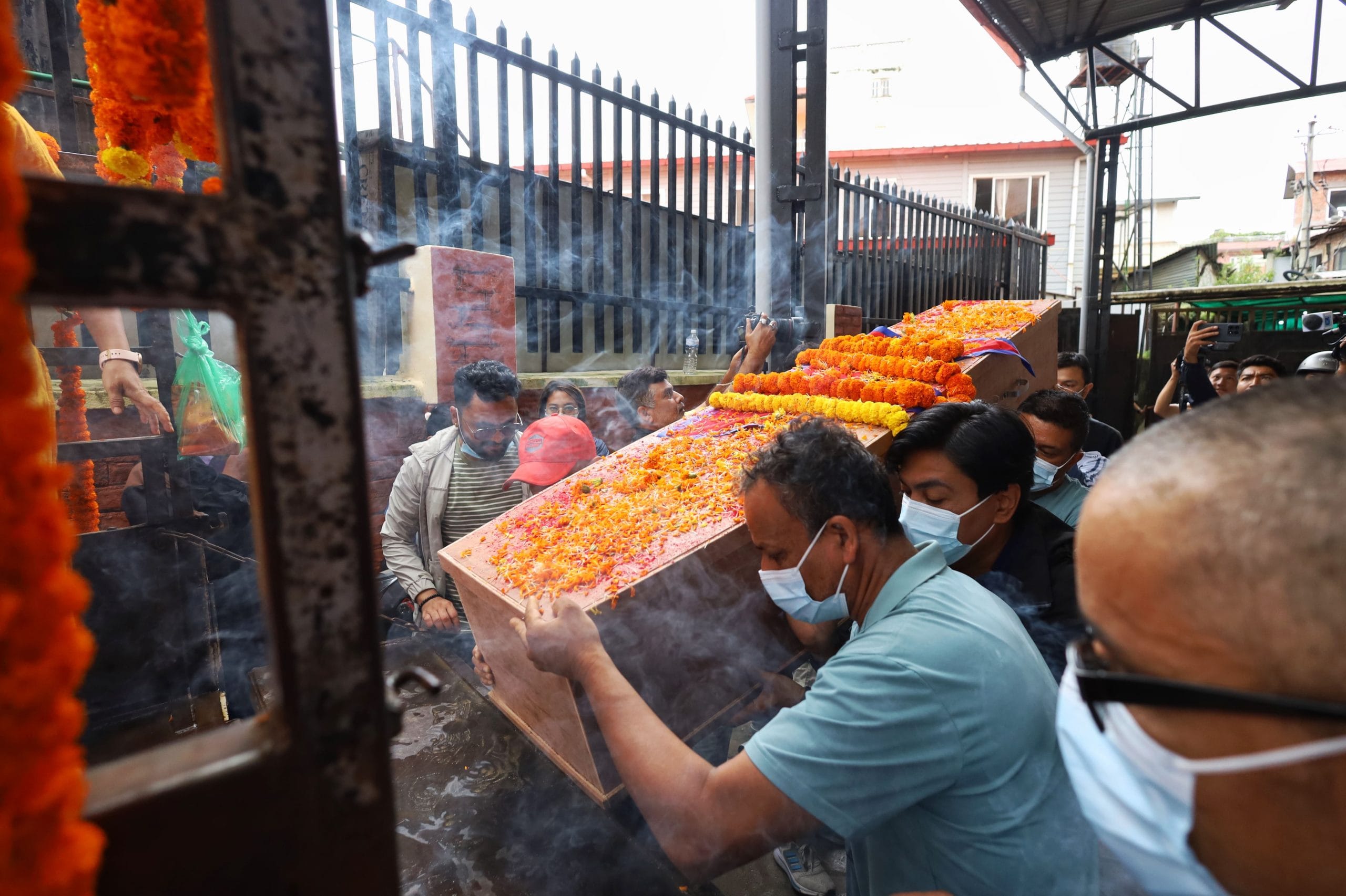 The funeral procession started from the Teaching Hospital mortuary where all the bodies were kept, and moved towards the Pashupatinath crematorium through the Ring Road. Accompanying those on foot were bikes carrying the national flag and shouting slogans of “Long live Nepal”.