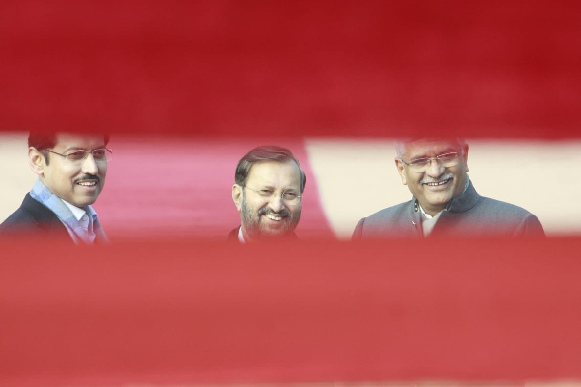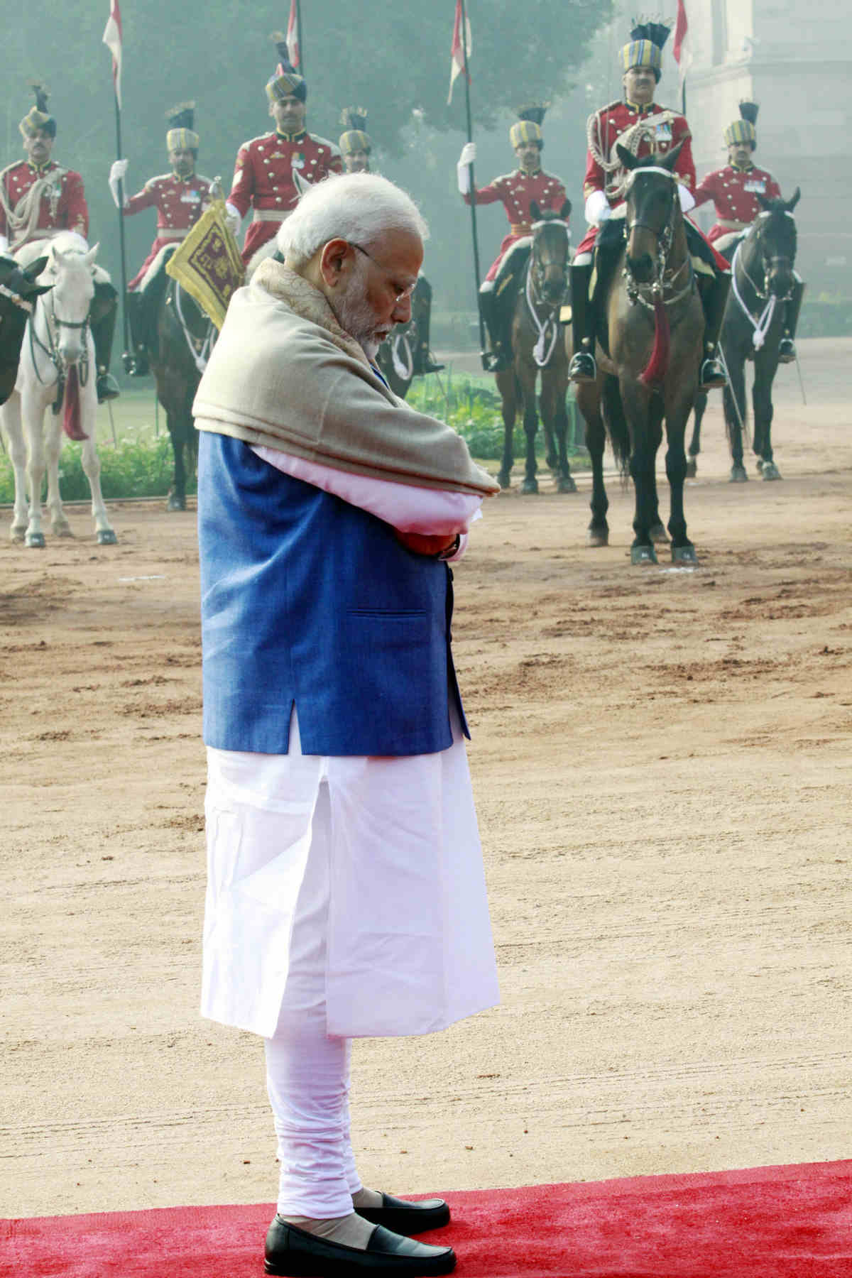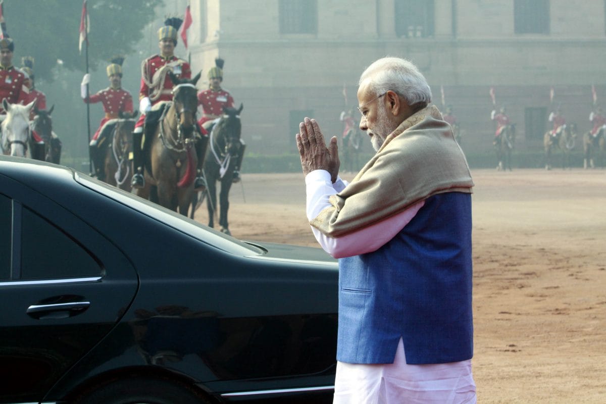 Prime Minister Narendra Modi arrives for the ceremonial reception of Norwegian PM Erna Solberg at Rashtrapati Bhawan on Tuesday | Praveen Jain/The PrintPrime Minister Narendra Modi gestures as vehicle carrying Norway PM Erna Solberg pulls up inside the Rashtrapati Bhawan on Tuesday | Praveen Jain/The PrintNorway PM Erna Solberg inspects the Guard of honour during ceremonial reception at Rashtrapati Bhawan on Tuesday. This is Solberg’s first state visit to India | Praveen Jain/The PrintPrime Ministers Narendra Modi and Erna Solberg smile for the cameras at the ceremonial reception. Solberg delivered the inaugural address at the Raisina Dialogue and will also address the India-Norway Business Summit during her visit | Praveen Jain/The PrintL-R: Union ministers Rajyavardhan Singh Rathore, Prakash Javadekar and Gajendra Singh Shekhawat were present at the ceremonial reception. Praveen Jain/The Print