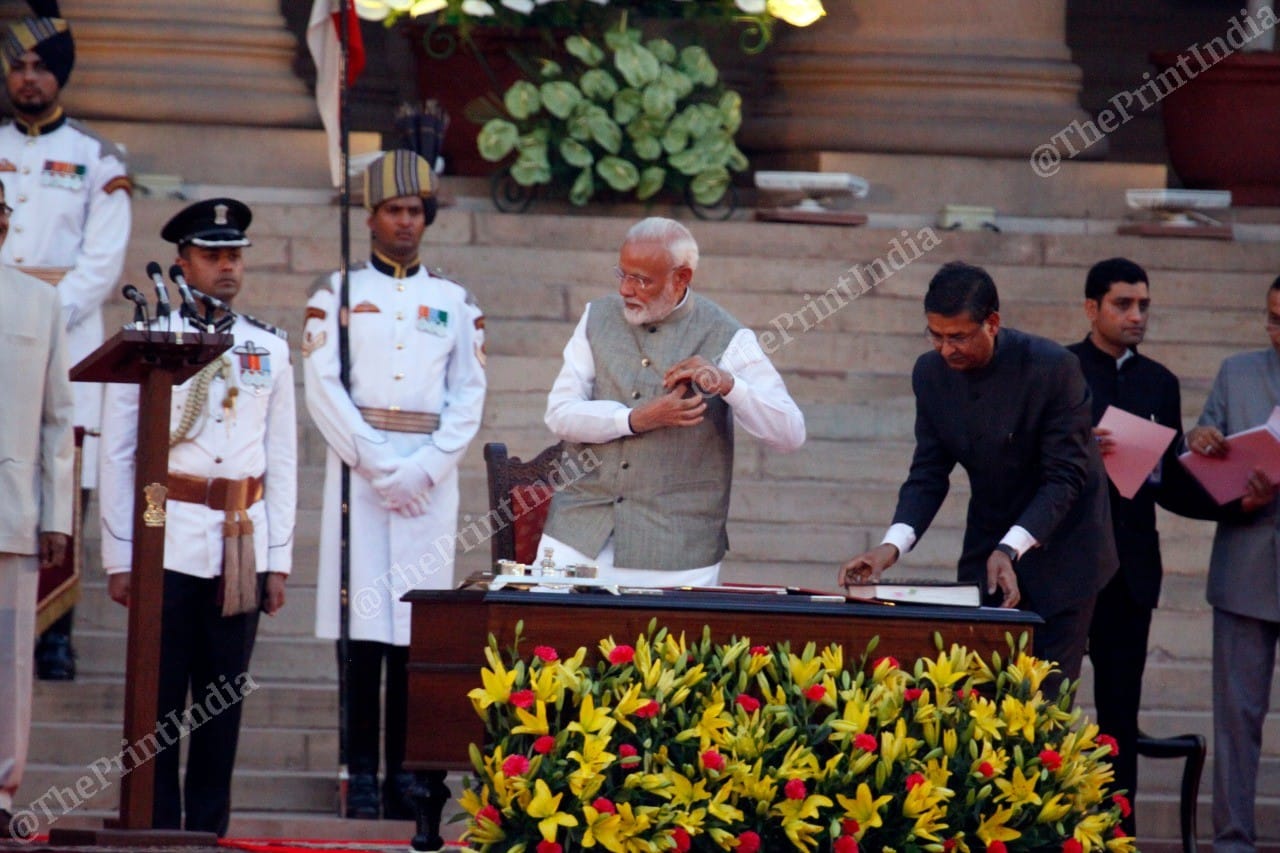 This is the second time Modi took the oath at the forecourt of Rashtrapati Bhavan. Modi was sworn in by the then President Pranab Mukherjee in 2014 in the presence of over 3,500 guests including the heads of SAARC countries.