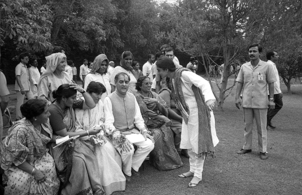 In this image from 1991, Rajiv Gandhi is seen taking a nap on a plane to Chennai | Photo: Praveen Jain | ThePrintRajiv Gandhi sitting amongst women who tied rakhis on him | Photo: Praveen Jain | ThePrintRajiv Gandhi with Chandra Shekhar, Samajwadi Janata Party leader, at an event in Bhondsi, Haryana | Photo: Praveen Jain | ThePrintRajiv Gandhi speaks to former PM Indira Gandhi’s confidante, R.K. Dhawan | Photo: Praveen Jain | ThePrintRajiv Gandhi and sister-in-law Maneka Gandhi at a function in Bhondsi, Haryana | Photo: Praveen Jain | ThePrintRajiv Gandhi (left) listens to cabinet minister Arjun Singh (right) at the PM’s residence | | Photo: Praveen Jain | ThePrintDeputy Prime Minister Chaudhary Devi Lal (folded hands) and former prime minister Rajiv Gandhi ( extreme right) attend Congress socialist leader Acharya Narendra Dev’s birth anniversary at Bhodsi village, Gurugram in 1990 | Photo: Praveen Jain | ThePrintRahul Gandhi (right) and Sonia Gandhi (middle) await Rajiv Gandhi’s remains after his assassination | Photo: Praveen Jain | ThePrintAt India Gate in Delhi, crowd surround hearse carrying Rajiv Gandhi’s mortal remains | Photo: Praveen Jain | ThePrintSonia Gandhi sits by herself in mourning beside her husband’s last remains at Teen Murti House | Photo: Praveen Jain | ThePrintManeka Gandhi walks out of Teen Murti House holding son Varun’s hand | Photo: Praveen Jain | ThePrintPriyanka Gandhi takes a short cut to her father Rajiv Gandhi’s memorial | Photo: Praveen JainActor Amitabh Bachchan(left), wife Jaya Bachchan (middle) and son Abhishek Bachchan cross a barricade in Delhi to reach Rajiv Gandhi’s memorial on the former PM’s death anniversary | Photo: Praveen Jain | ThePrintPriyanka Gandhi gazes at Rajiv Gandhi’s photograph on a book cover. It was at an event on the former PM’s first death anniversary | Photo: Praveen Jain | ThePrint