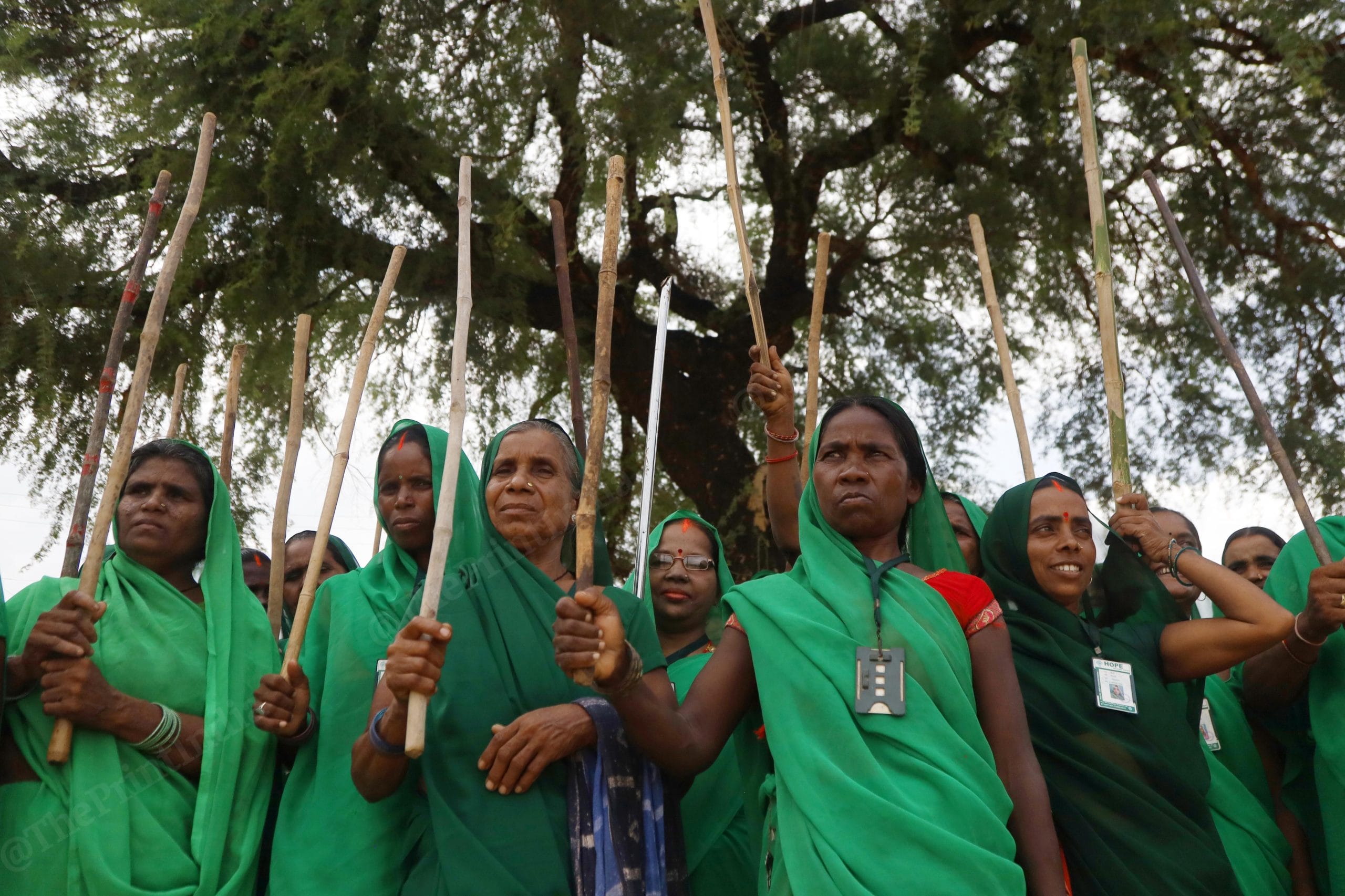 The Green Army in Uttar Pradesh was formed for women to take a stand against oppression and violence. This image of a group of Green Army members, heads demurely covered, but armed with sticks for self-defence, is for me a strong message of women’s empowerment penetrating some of the most backward sections of society | Photo: Manisha Mondal | ThePrint