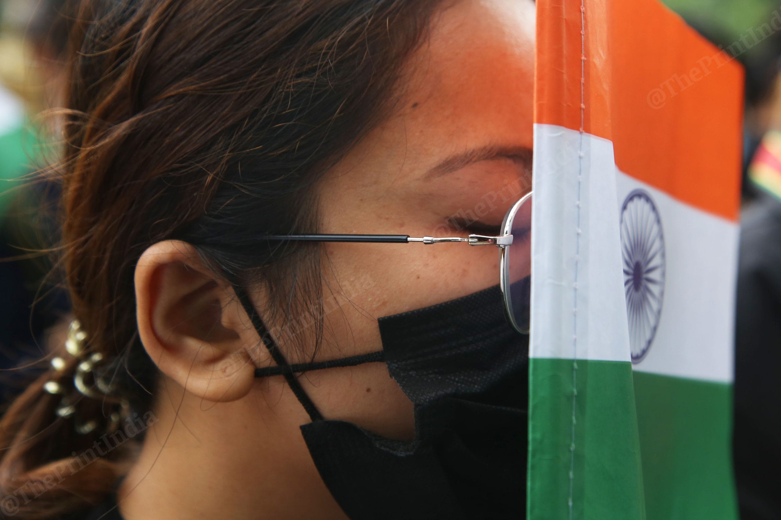 The echoes of this year’s Manipur ethnic conflict, between the state’s tribal Kuki-Zo and non-tribal Meitei communities, were heard as far as the national capital, where Kuki protestors demonstrated for a separate state and Chief Minister Biren Singh’s resignation. While many have called the demand for separate state “anti-national”, this protestor makes a public statement of her patriotism. It is this which makes it a significant image for me Photo: Manisha Mondal | ThePrint