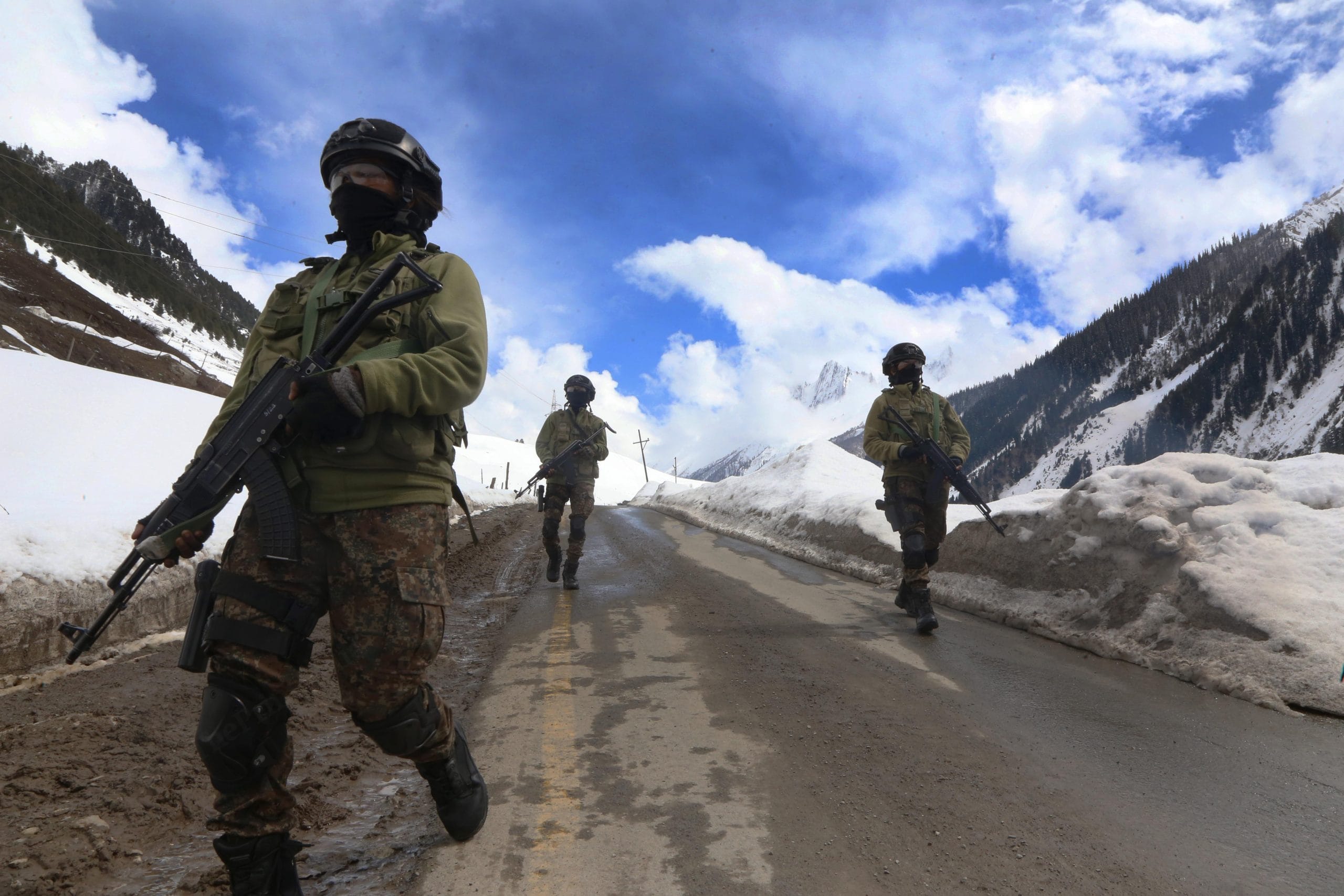 Life is often as rough for these women as the road and terrain they are traversing here. Members of the CRPF’s Valley Quick Action Team demonstrate how they patrol the Amarnath road | Photo: Manisha Mondal | ThePrint