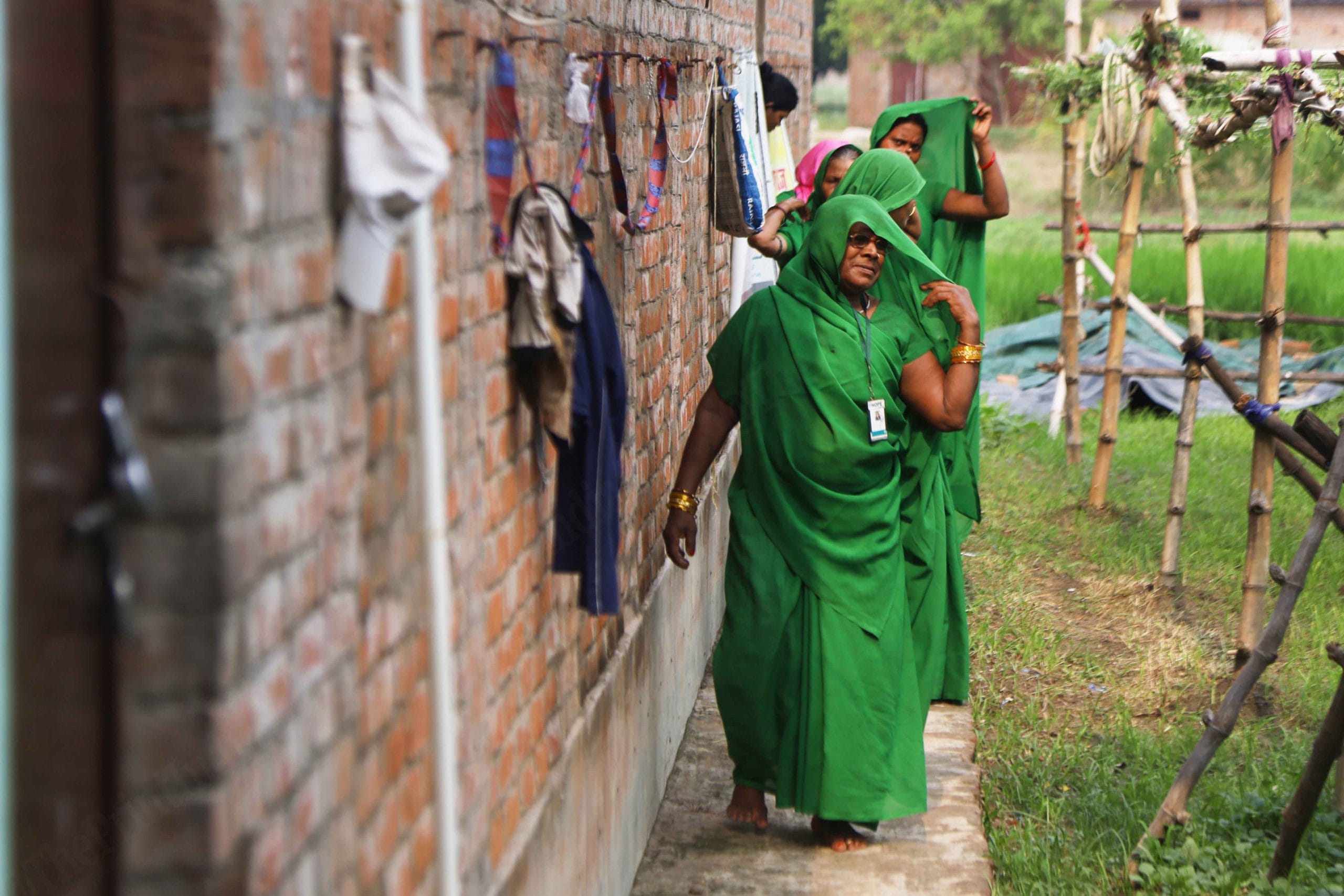 The women, many of them from Dalit & tribal communities, are easily recognisable in their green sarees. Their aim is to use non-violent methods to help those facing domestic abuse.
