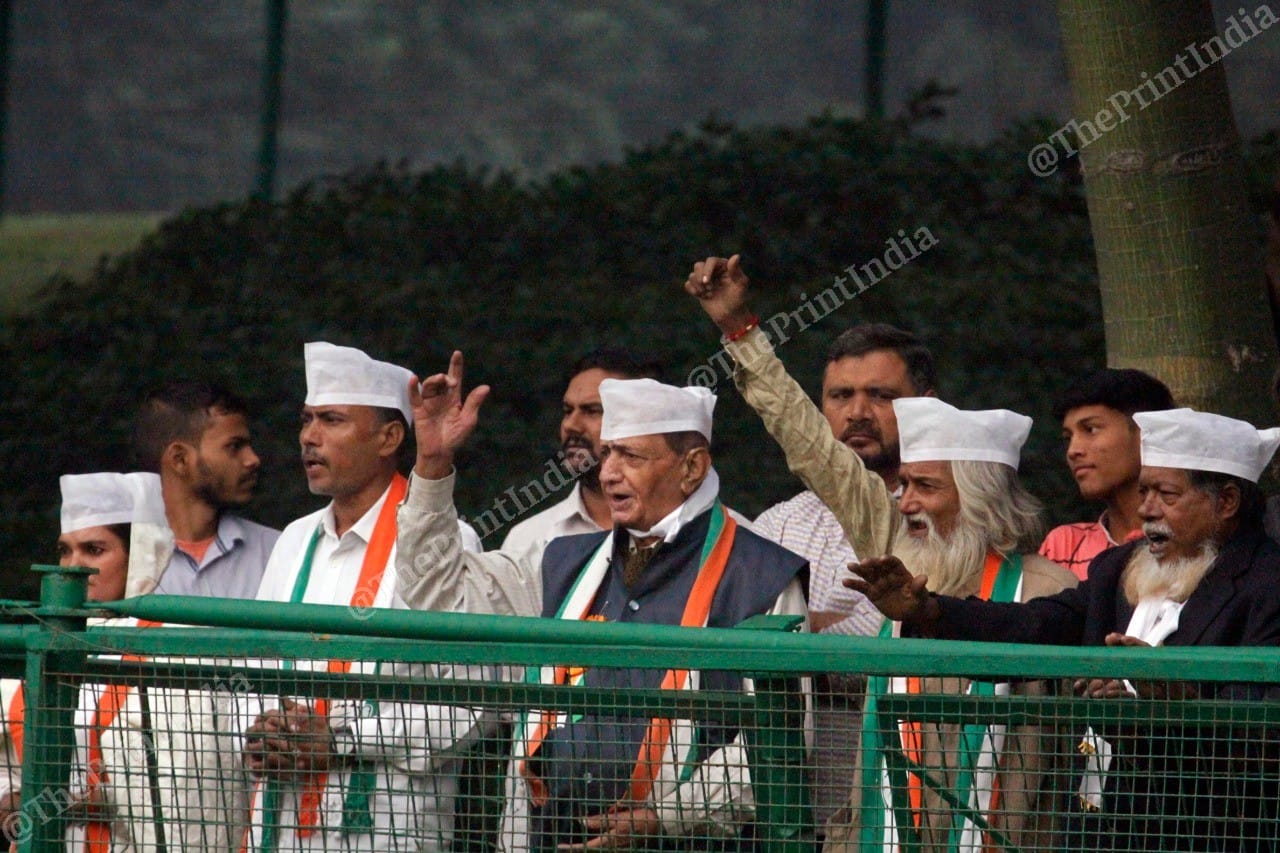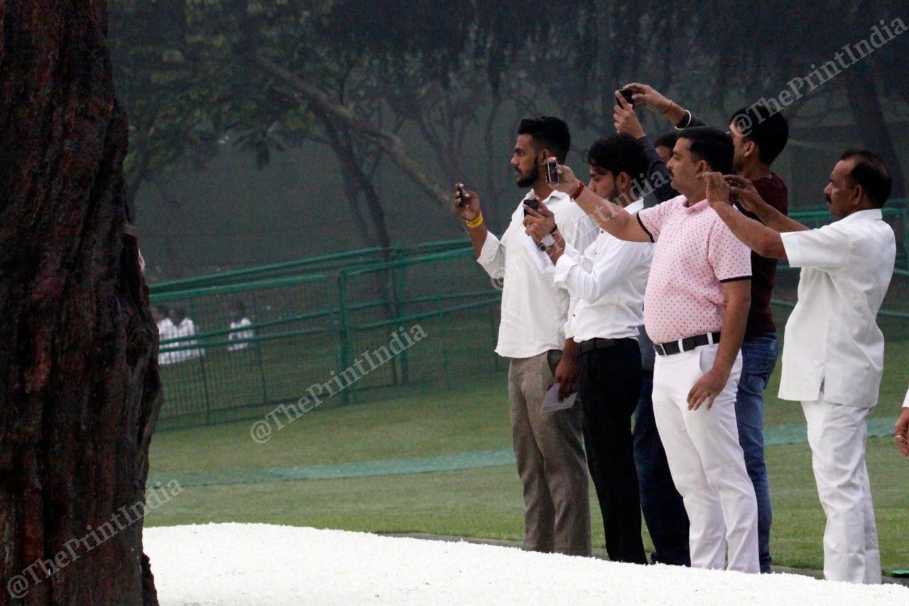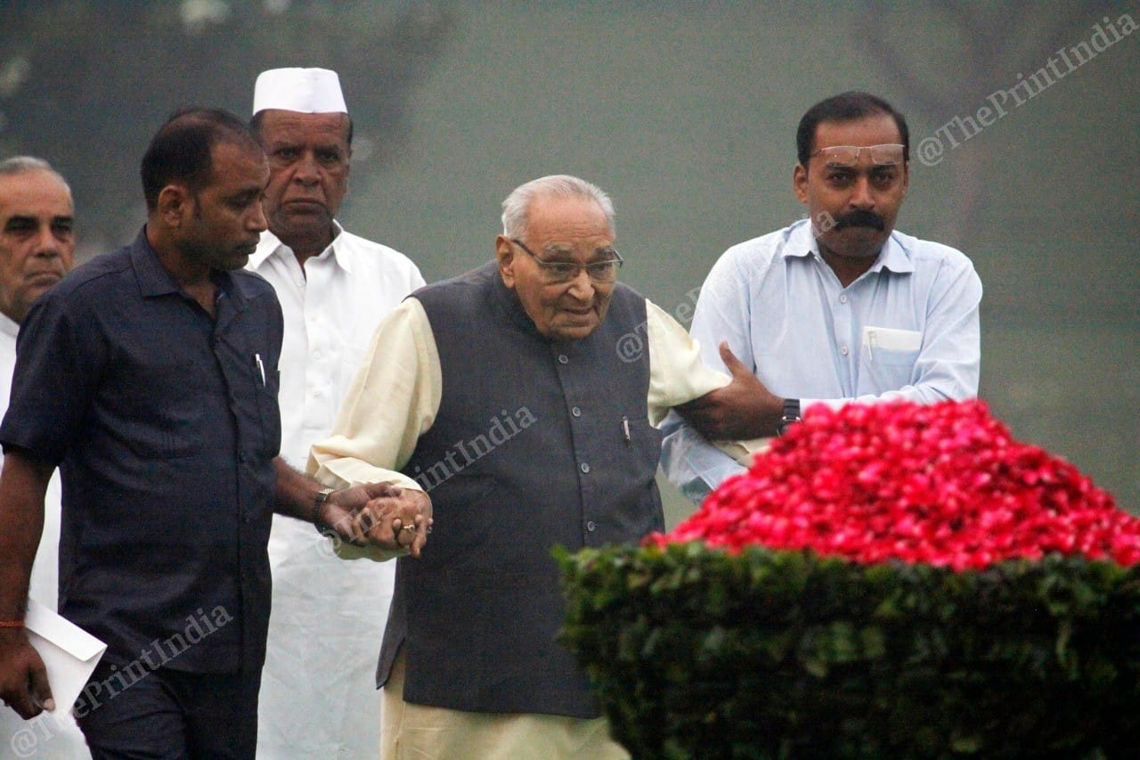 Former prime minister Manmohan Singh at Shakti Sthal | Photo: Praveen Jain | ThePrintSonia Gandhi attends the ceremony held in honour of her late mother-in-law | Photo: Praveen Jain | ThePrintFormer President Pranab Mukherjee, who was a finance minister in Indira Gandhi’s cabinet, at Shakti Sthal | Photo: Praveen Jain | ThePrintChief Minister of Rajasthan Ashok Gehlot at Indira Gandhi’s remembrance ceremony at Shakti Sthal, New Delhi | Photo: Praveen Jain | ThePrintSenior Congress leader and Gandhi loyalist Motilal Vora at Shakti Sthal | Photo: Praveen Jain | ThePrintCongress leader Jagdish Tytler, who was an accused in the 1984 anti-Sikh riots that broke out after Indira Gandhi was assassinated by her Sikh bodyguards, pays his respects at Shakti Sthal, New Delhi | Photo: Praveen Jain | ThePrintSonia Gandhi leaves Shakti Sthal, New Delhi | Photo: Praveen Jain | ThePrintRamesh Dutta, who was a close to Indira Gandhi during her tenure as Prime Minister, and Congress party workers attend Indira Gandhi’s remembrance ceremony at Shakti Sthal, New Delhi | Photo: Praveen Jain | ThePrintPeople photograph Congress leaders at Shakti Sthal, New Delhi | Photo: Praveen Jain | ThePrint