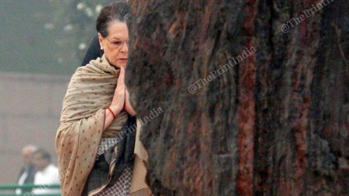 File photo of Sonia Gandhi at Shakti Sthal, New Delhi | Photo: Praveen Jain | ThePrint