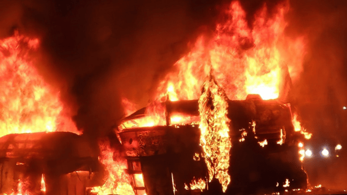 Chitradurga: A tragic accident occurred near Gorlathu village, located in the Hiriyur taluk of Chitradurga district, on National Highway 48. A private bus, travelling from Bengaluru to Shivamogga, was involved in a collision with a lorry. The impact caused the bus, a sleeper coach, to catch fire. As per preliminary reports, more than 10 people are feared to have perished in the blaze.