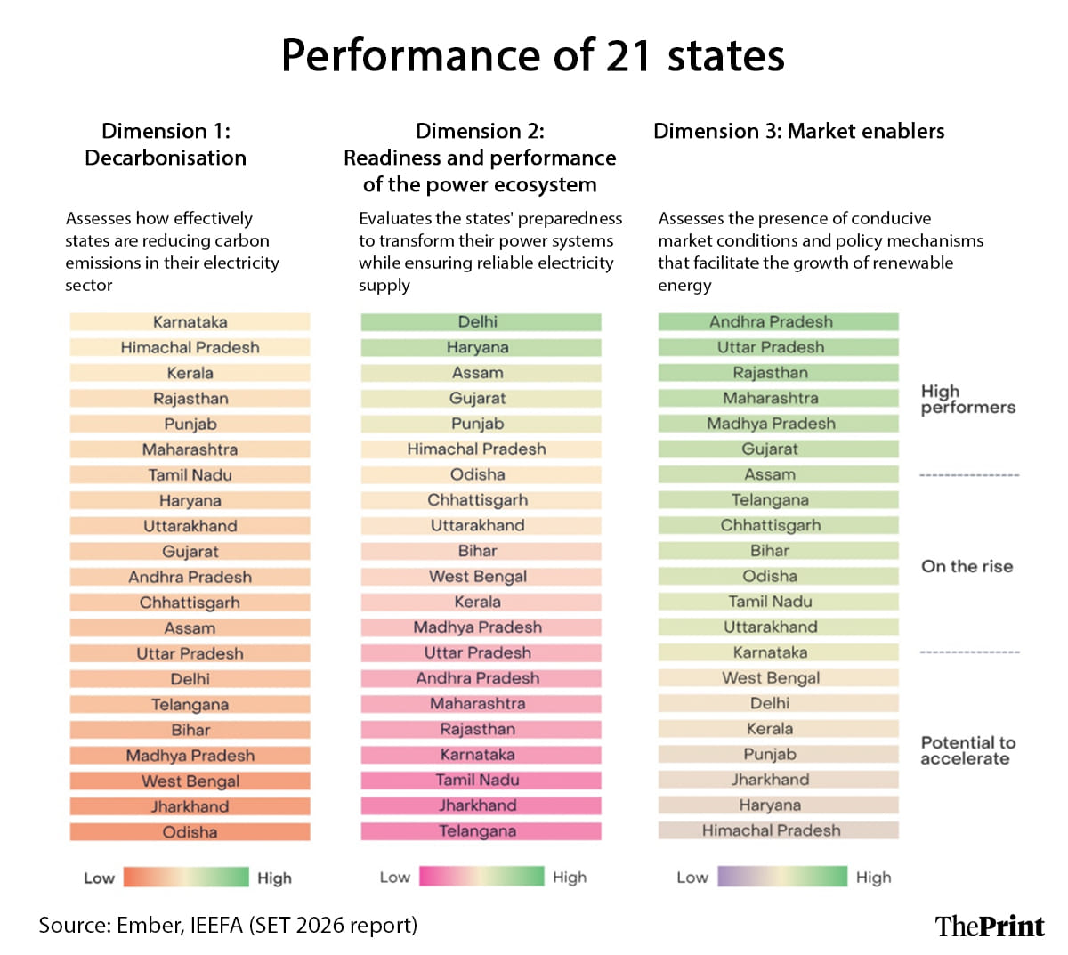 The report, third edition of the joint assessment by US-based non-profit Institute for Energy Economics and Financial Analysis (IEEFA) and Ember, independent global energy think-tank, evaluated 21 Indian states across three criteria: decarbonisation, readiness and performance of the power ecosystem, and market enablers.