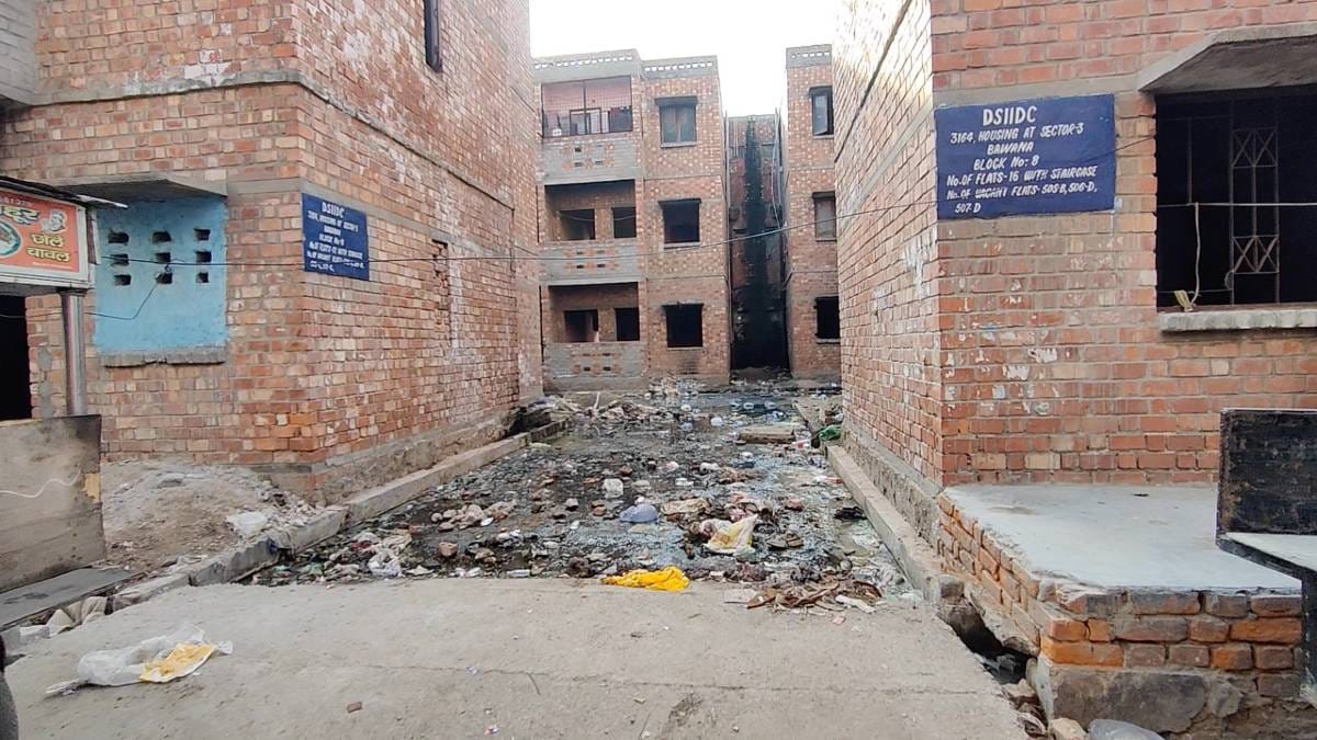 As one enters the Lal Flats built in Bawana under the JNNURM scheme, a putrid smell fills the air. The narrow lanes are blocked with sewage water and garbage. The last time any authority came to clean the area was in October, at the time of Dussehra, the residents who live there said.