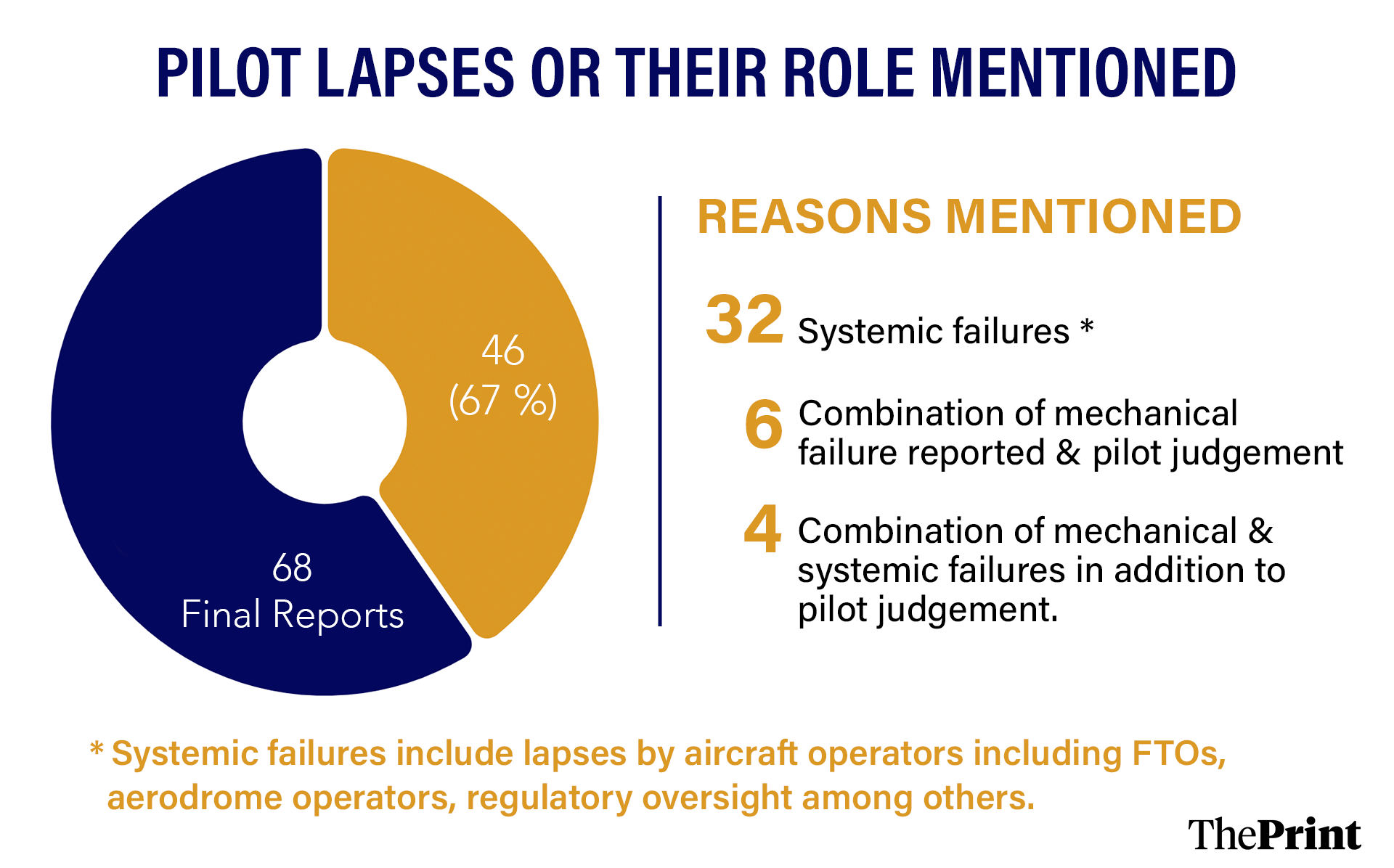 New Delhi: Pilot actions find mention in at least 67 percent of the 68 final reports the Aircraft Accident Investigation Bureau (AAIB) has put out on aircraft accidents since 2012, an analysis by ThePrint has shown.