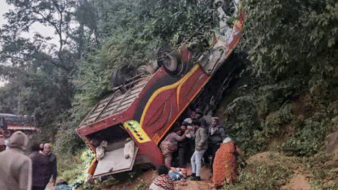 The truck reportedly skidded off the hilly road and fell into a deep gorge. The accident occurred on December 8. According to the reports, the people were travelling to Hayuliang for construction-related work.