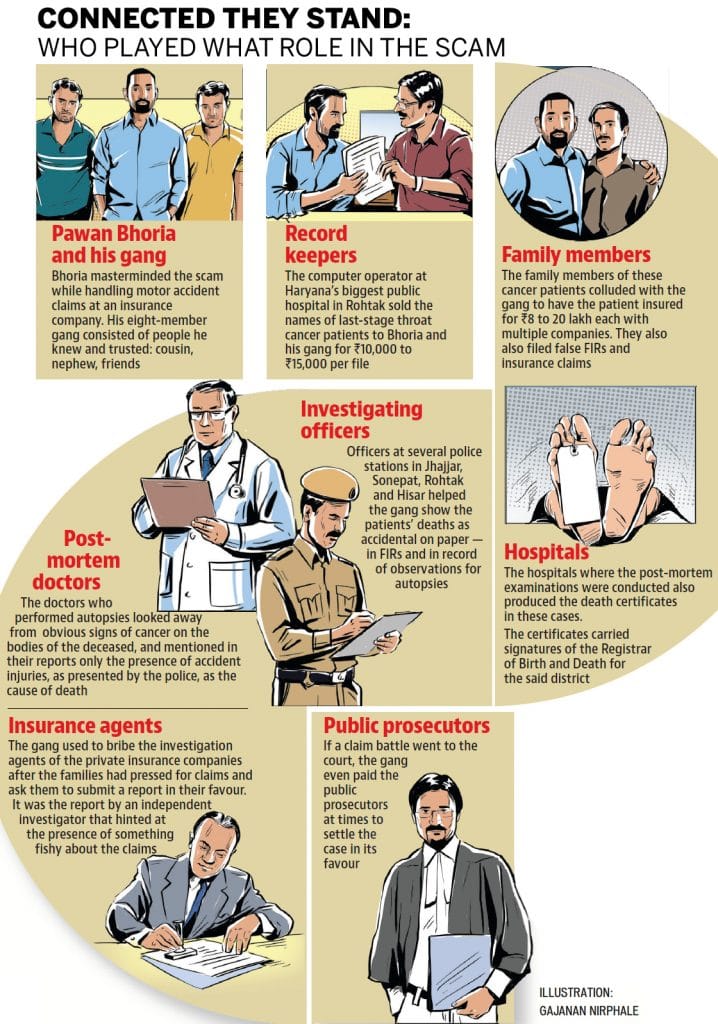 Everything about the scam sounds strangely unreal. The Haryana-based gang allegedly identified terminal cancer patients from rural, low-income backgrounds, got them to insure themselves with multiple companies by hiding their condition, waited for them to die, and then put their dead bodies through “accidents”.