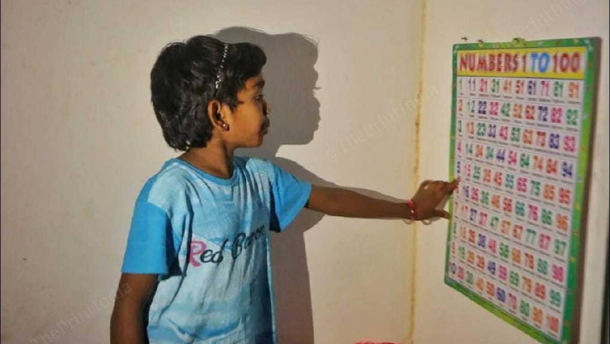 The room where the chart hangs is dark as there is no electricity, but that is no deterrence to Deepika, who is from the Gond tribe and dreams of becoming a teacher.