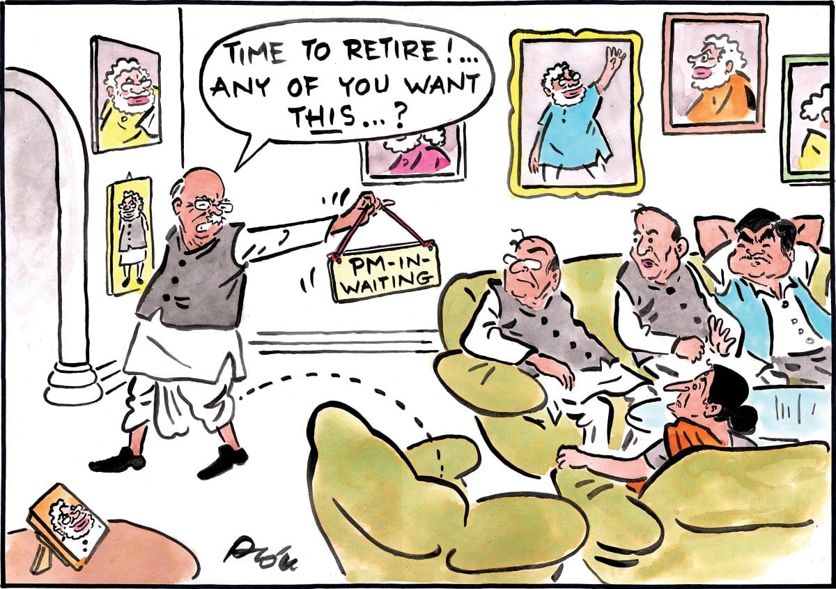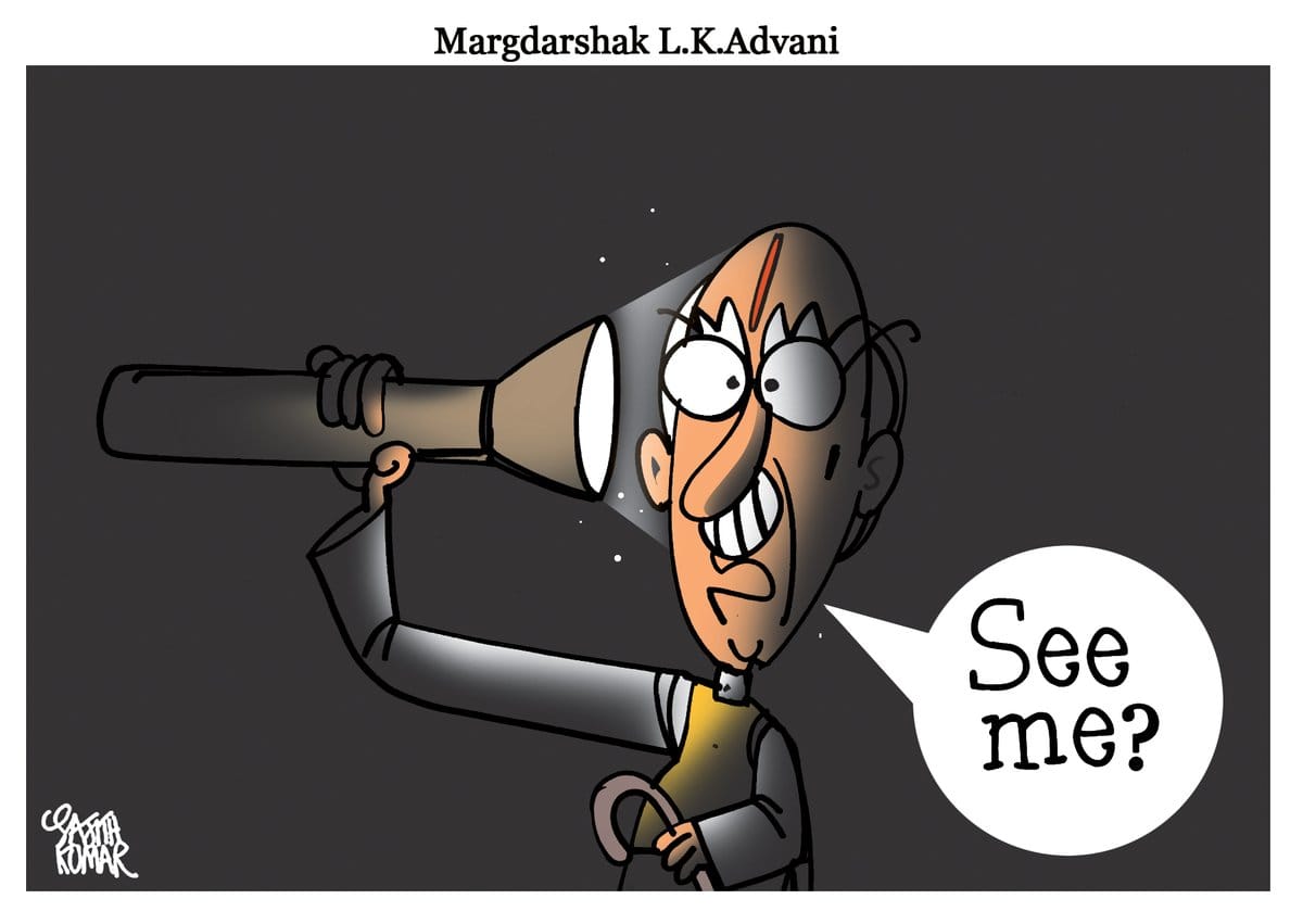 Sajith Kumar for the Deccan Herald too depicts senior BJP leader Lal Krishna Advani’s exit from the political limelight.