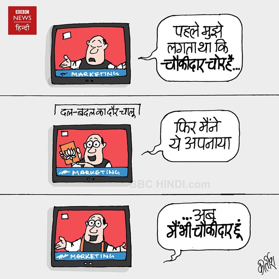 Kirtish Bhatt for BBC News Hindi takes a dig at the BJP’s ‘Main Bhi Chowkidar’ campaign.