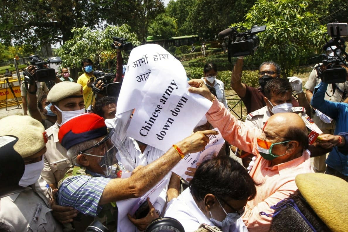 Earlier in the day, the Congress party criticised the government for not being transparent and for remaining quiet on the issue. Party members held a protest in Indore, Madhya Pradesh, Tuesday during which they shouted anti-China slogans and also burnt Chinese flags in front of Devi Ahilya Vishwavidyalaya.