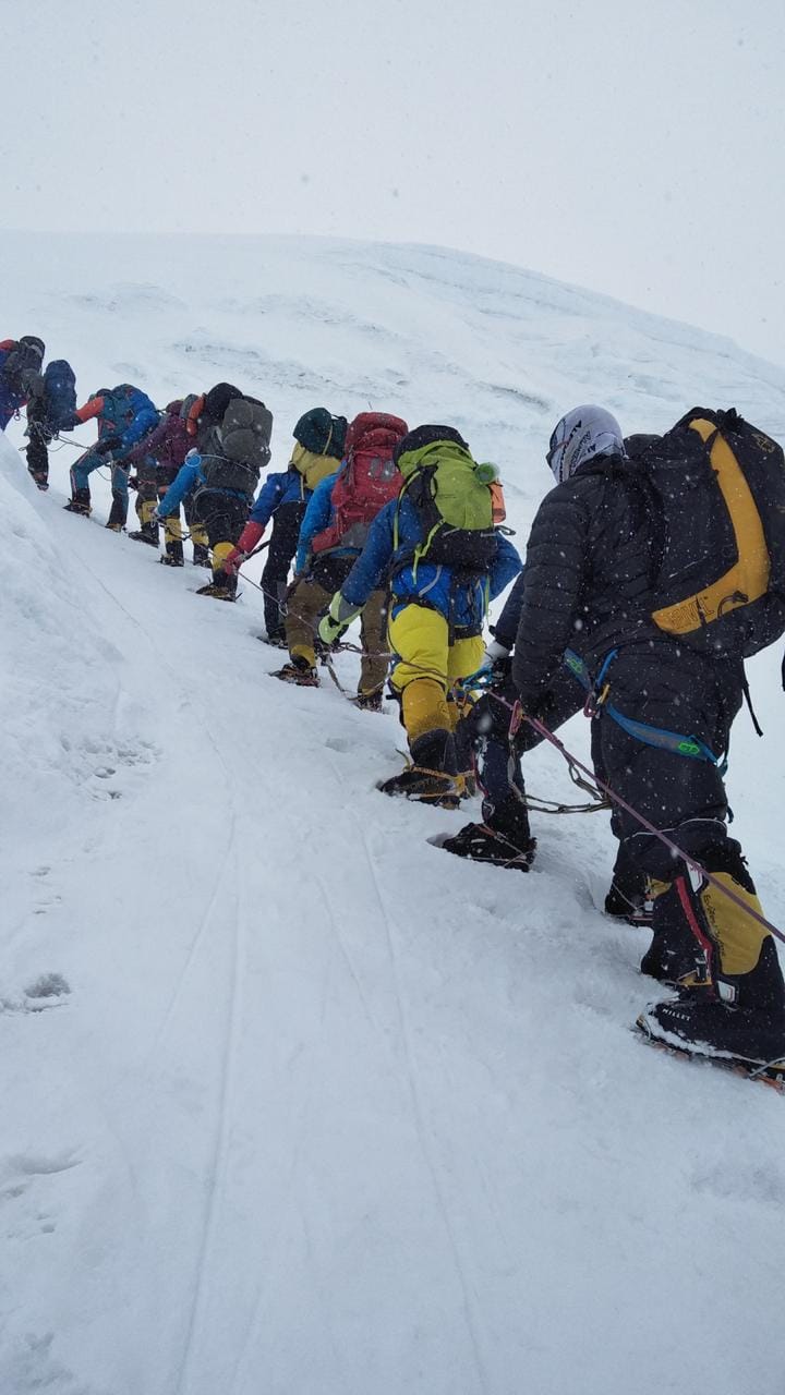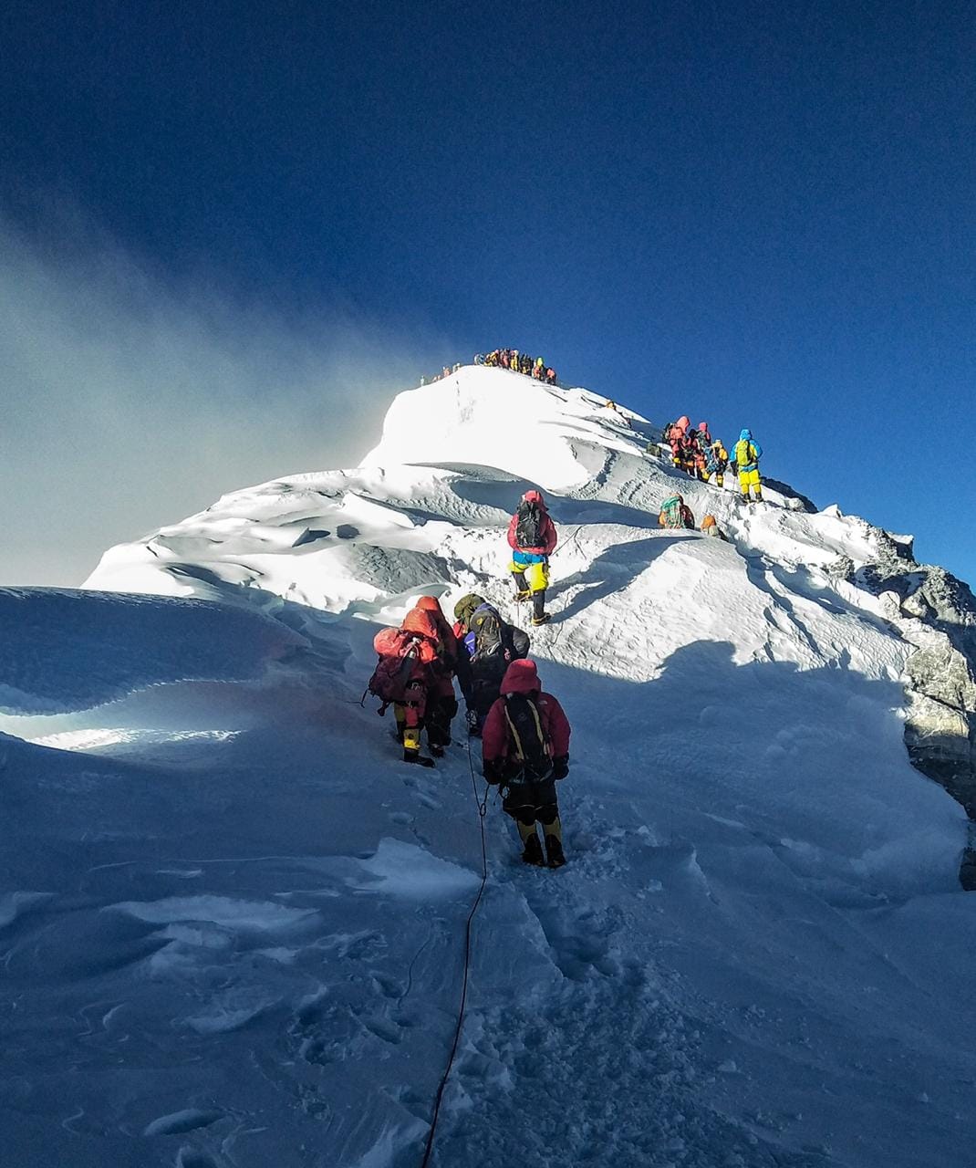 “The critical problem faced this year was the number of people trying to ascend at the same time and clipped to the same safety line,” said Upadhyay.