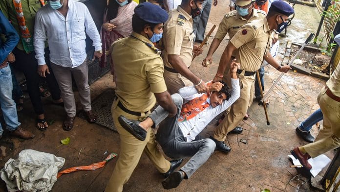 Akshada Tendulkar, a BJP supporter, alleged that when she was returning to her vehicle after the protest, she was suddenly attacked by Sena workers and “police did nothing to stop them”.