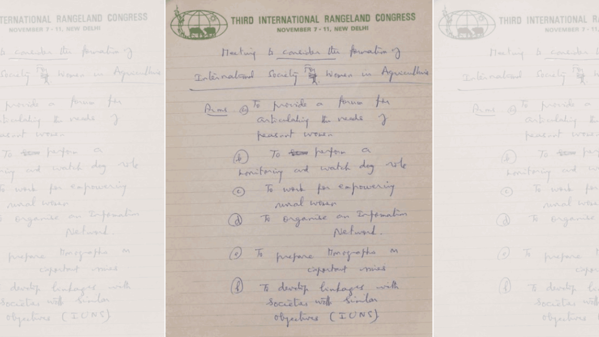 Swaminathan’s work over the years has focused on empowering women in agriculture. The working group lists Indian academic and feminist Vina Mazumdar and Janice Jiggins from Netherlands, among others, many of whose comments at the meeting are documented in Swaminathan’s diary.
