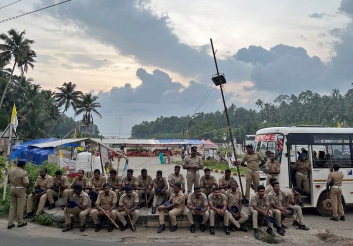 Television footage from local news outlet Manorama showed dozens of police officials in riot gear deployed outside the port and arguing with protesters. A group of protesting women were also seen lying on the road leading to the port.