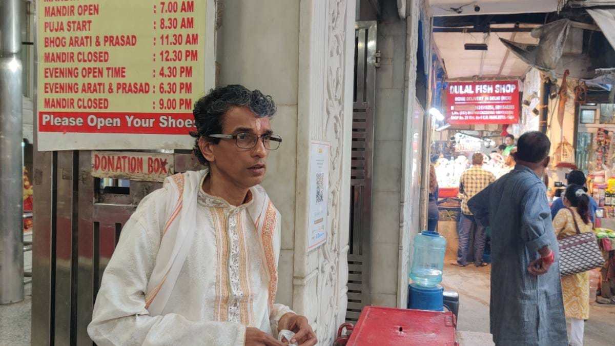 Towards the evening, fish vendors’ calls at the market grew louder, mingling with the sacred chants of the temple. The market has been at the centre of a political row after Trinamool Congress MP Mahua Moitra alleged on X that Right-wing groups had tried to forcibly shut down fish shops in CR Park.