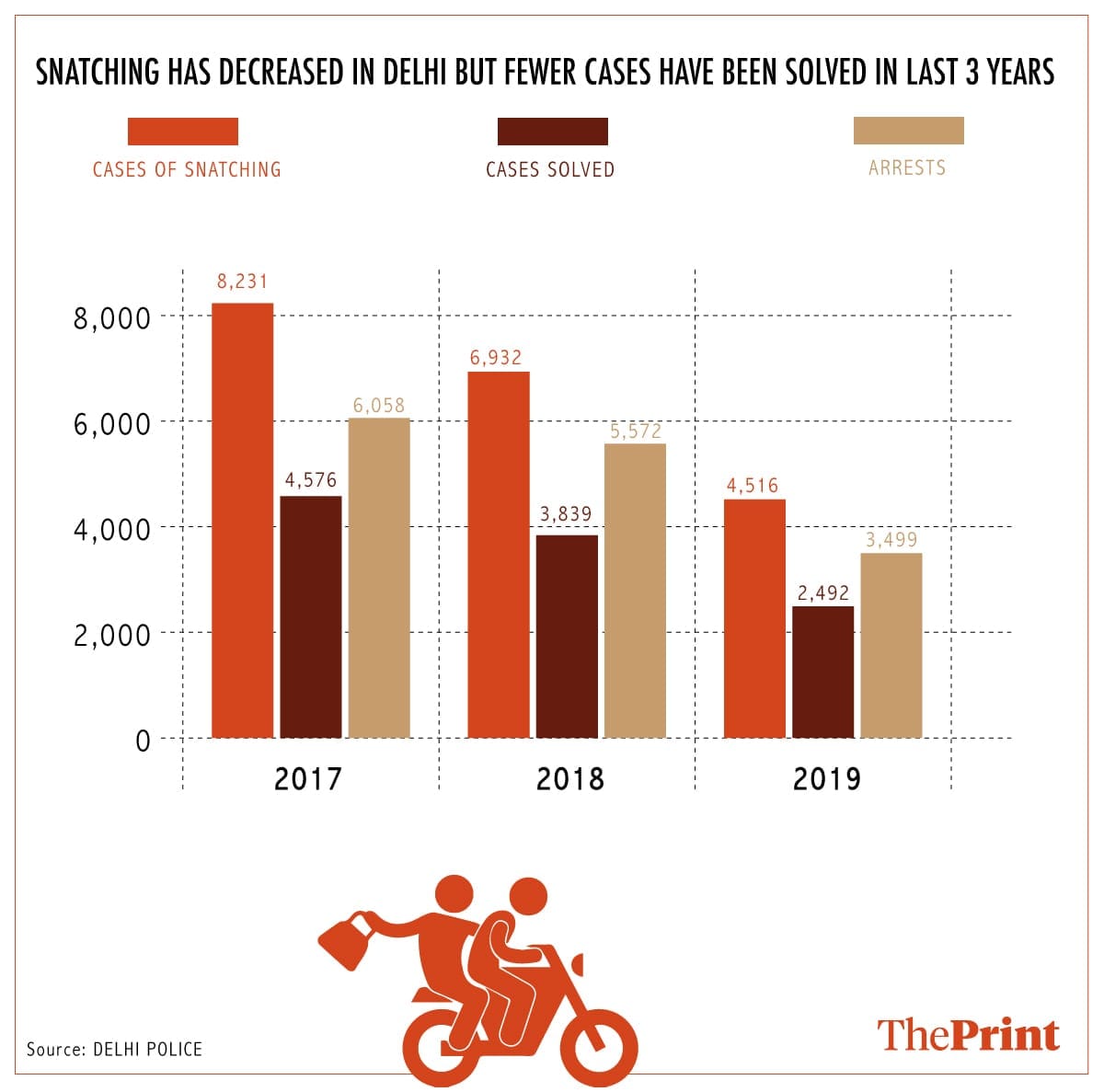 The numbers, however, fail to give confidence to the people of Delhi, with snatching cases being reported every day.
