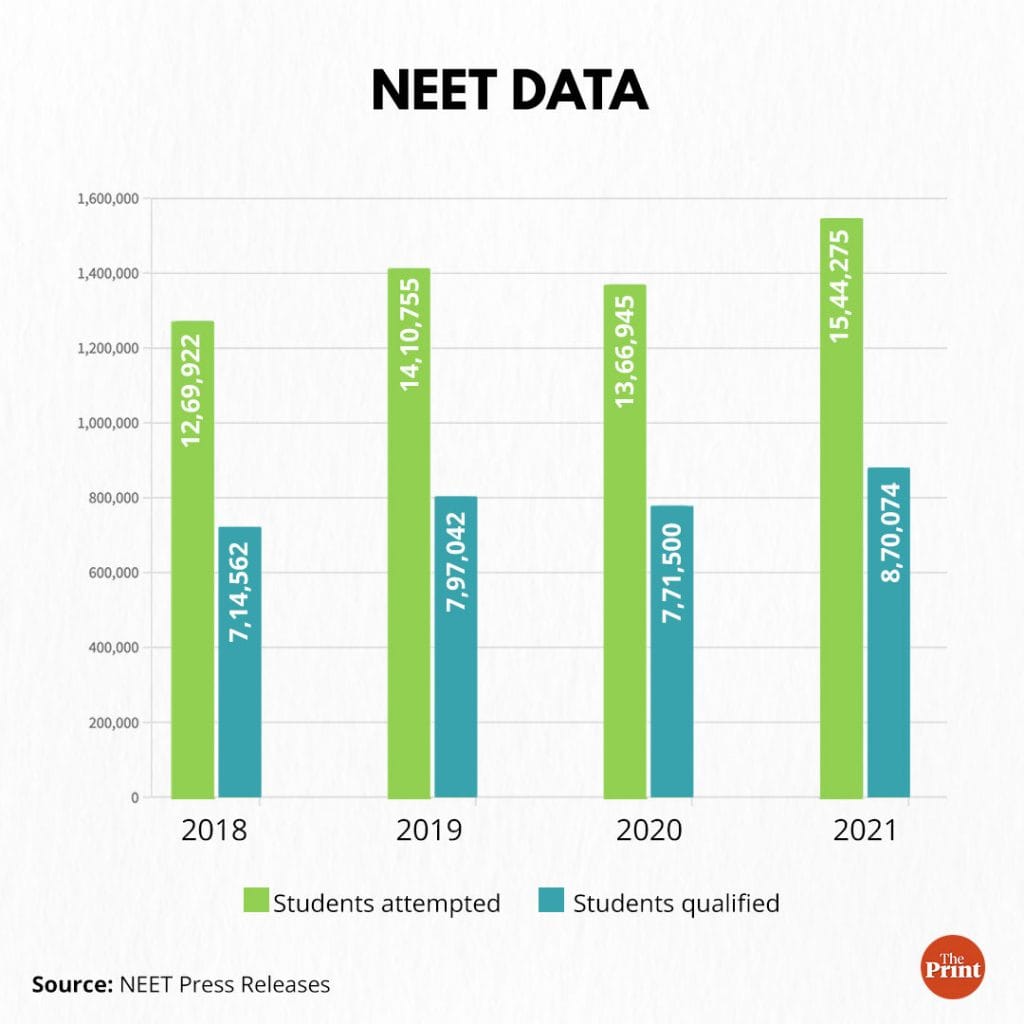On an average, from 2018 to 2021, 7.8 lakh students in India cleared the National Eligibility cum Entrance Test (NEET) for admission into a medical college. However, for these 7+ lakh students, there are just 80,000-odd medical college seats, government and private institutions combined, across the country.