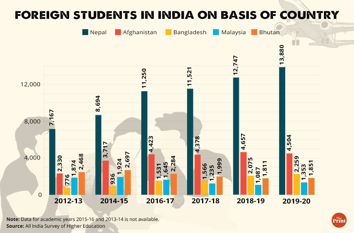In fact, countries like Malaysia and Bhutan, which used to send a lot of students to India, have reduced their numbers after educational facilities improved locally.