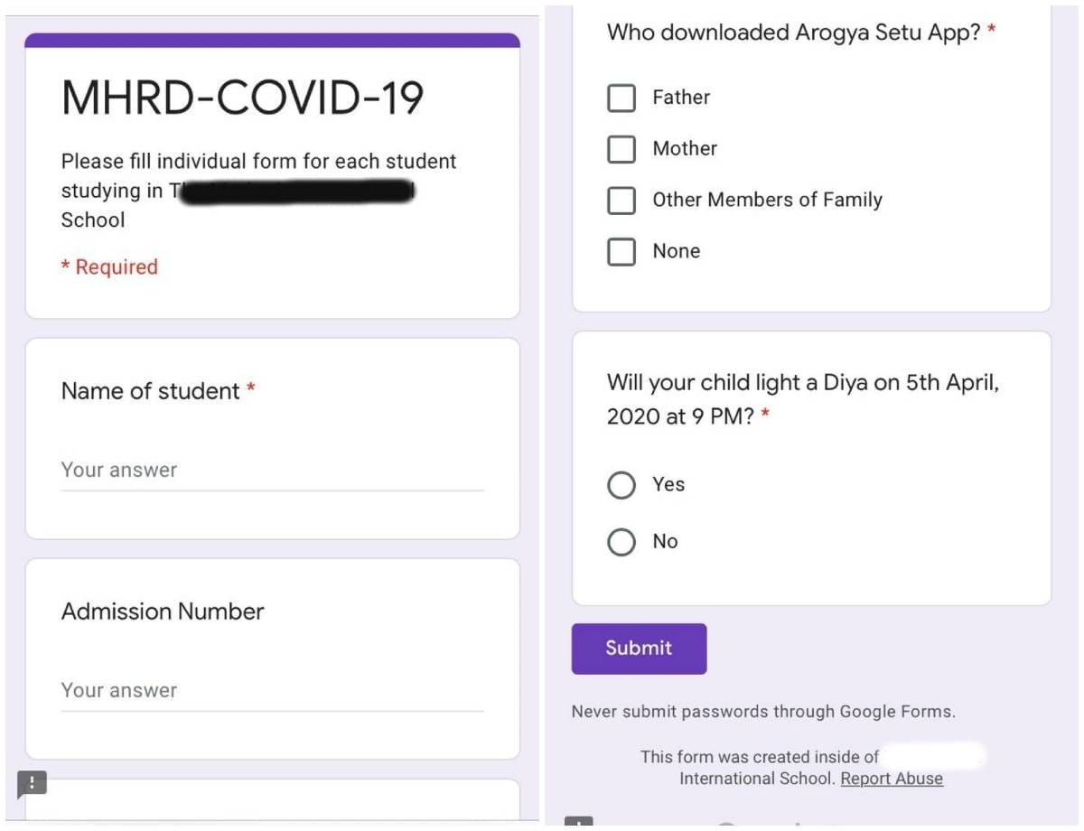 The circular sent by the ministry also says that students should download the Arogya Setu mobile app which has been developed to fight Covid-19. The school forms inquire whether students have downloaded the app yet.