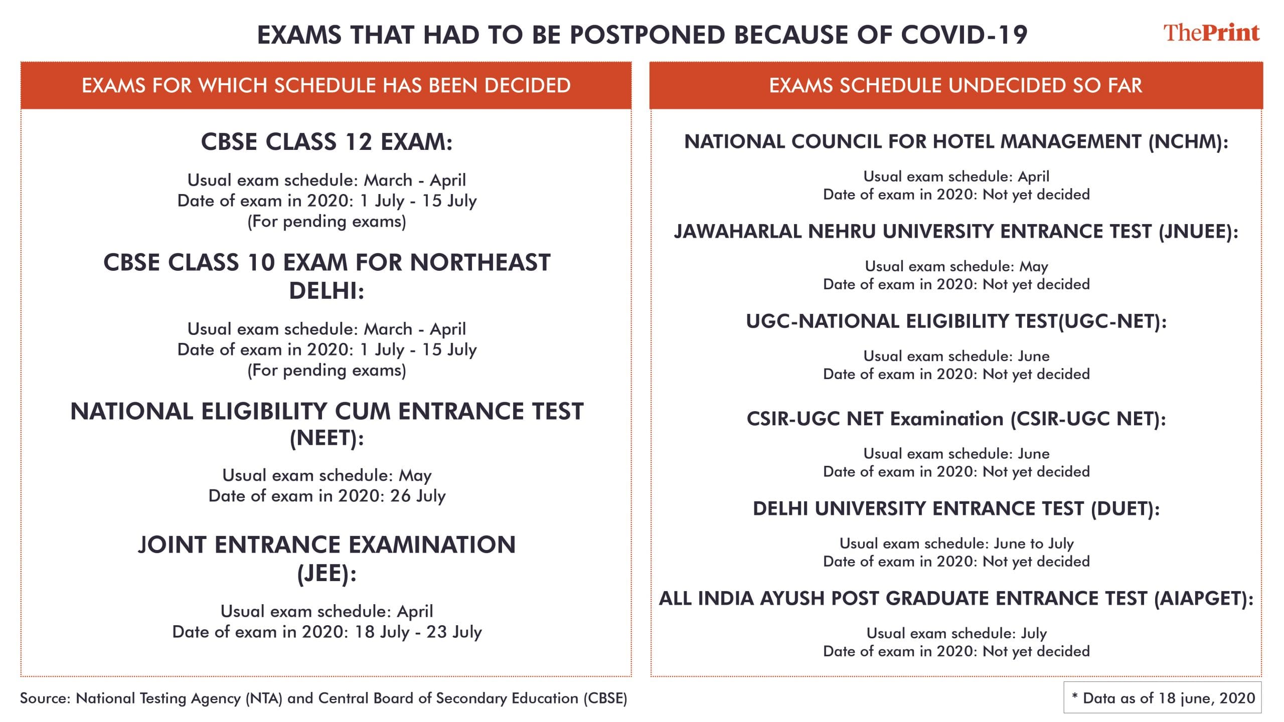 Here is a list of exams that were postponed because of Covid-19 and their new dates: